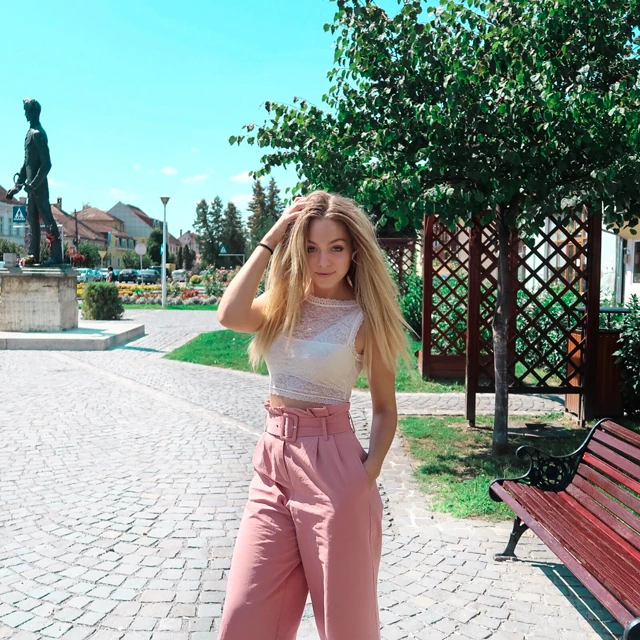 Mivel imádom a lenge és kényelmes darabokat, így egy kis csipke felsővel elegánssá tudom varázsolni a bő fazonú nadrágot egy romantikus séta / ebéd alkalmával. Imádom a pasztell színeket. A platform szandál pedig elengedhetetlen, a cipős szekrényemben már lassan minden színben van.