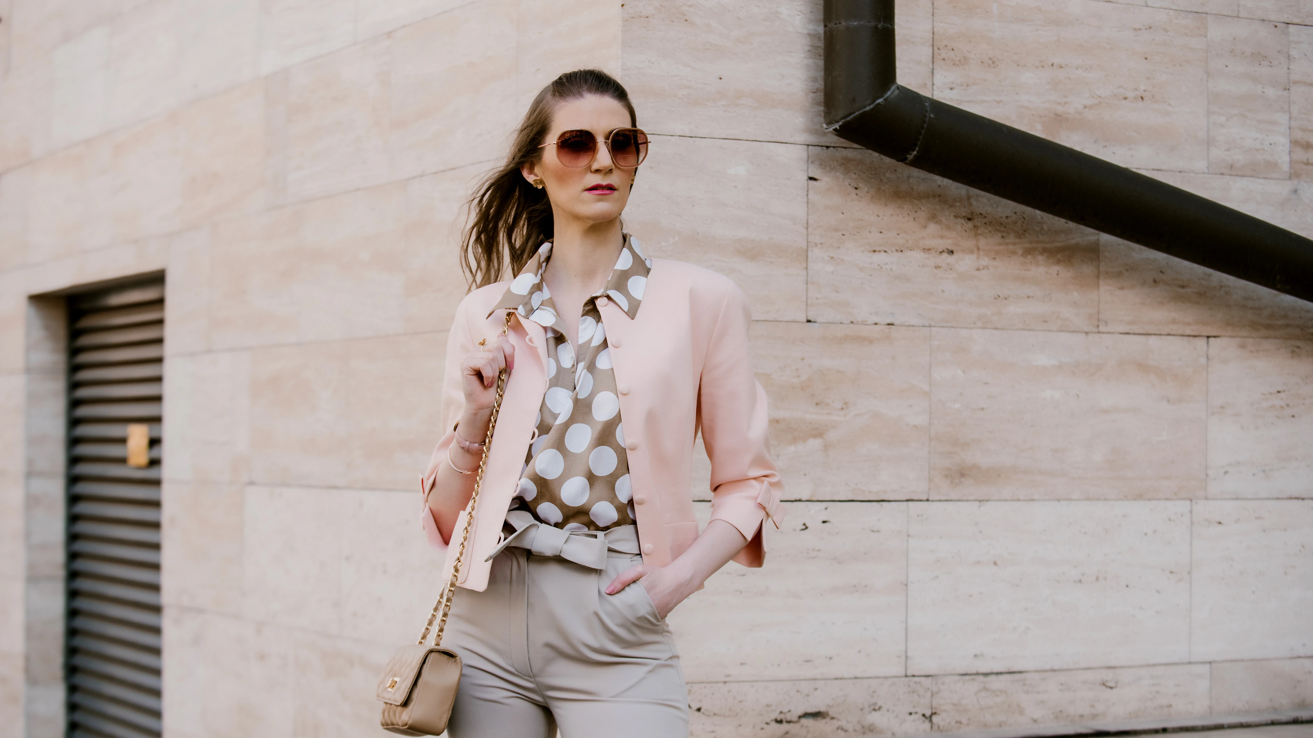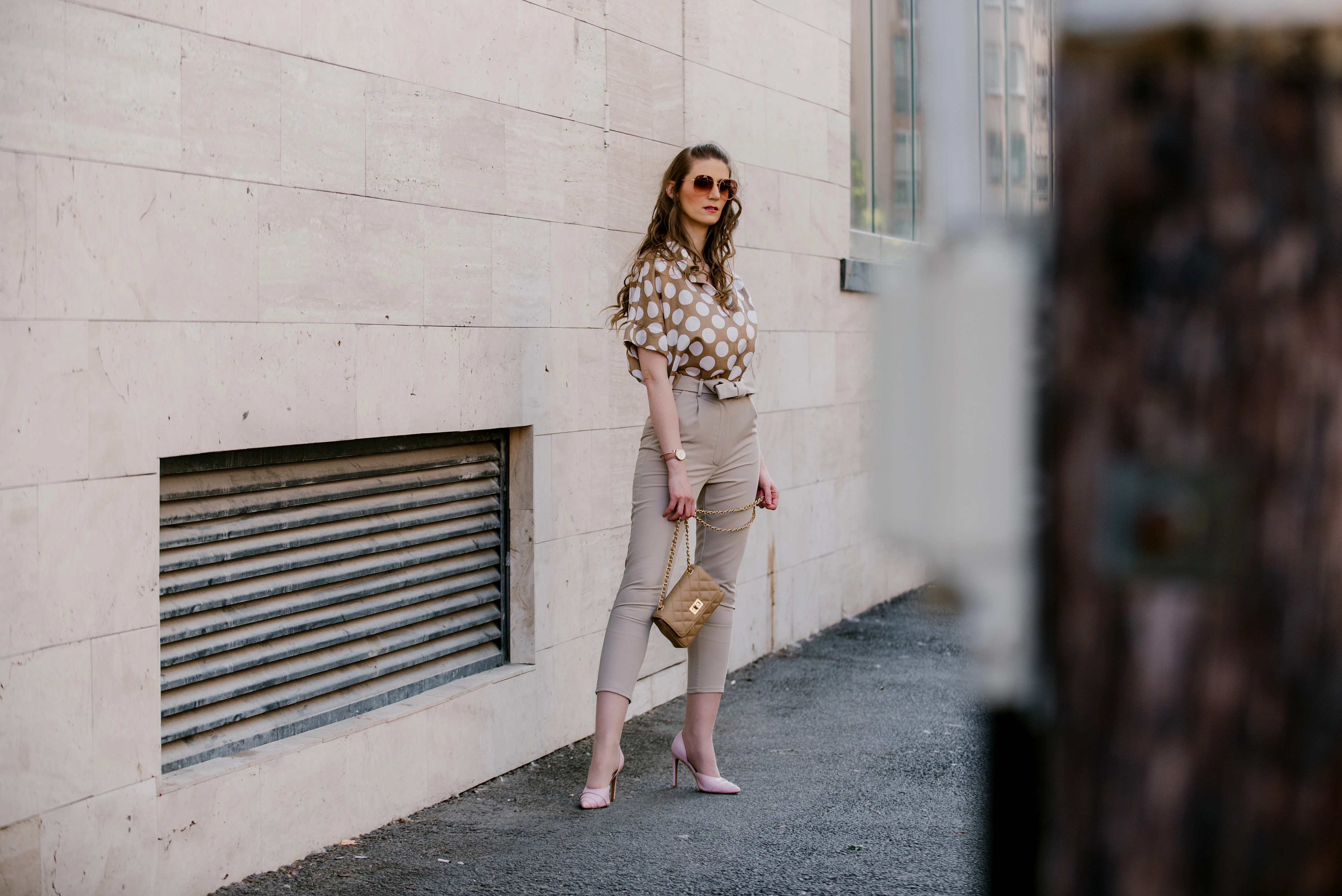 Hogyan is van a reklám? ‘’A pöttyös az igazi”, ma a megjelenésemnek is a pöttyös blúz adja meg hangsúlyát, melyet egy magasított derekú ceruzanadrággal és egy háromnegyedes ujjú blézerrel fűszereztem meg. A figyelemfelkeltő darab ugyan a pöttyös blúz lett, ami már önmagában is az igazi “imádnivaló” kategóriába sorolja megjelenésem, de hogy teljes legyen az összhang, így a mai “cuki” hangulat a blézerem is visszacseng. Igen, azok ott apró masnik melyek nem csak a ujján díszelegnek a púder színű blézeremen, hanem hátul is van belőle még egy. A masnikból kötöttem plusz egyet a derekemra is, de persze csak azért, hogy legyen belőle most már mindenhol. Tudod ha van elől is, akkor lehet hátul is, és amúgyis - masniból sosem elég. A ruhám színeinek akkorjait használtam a kiegészítőknél is és az ékszerek esetében pedig a rosegold lett a főcinkos, hogy összhangban tartsa megjelenésem. Blézer: VIKTORIAVARGA Budapest