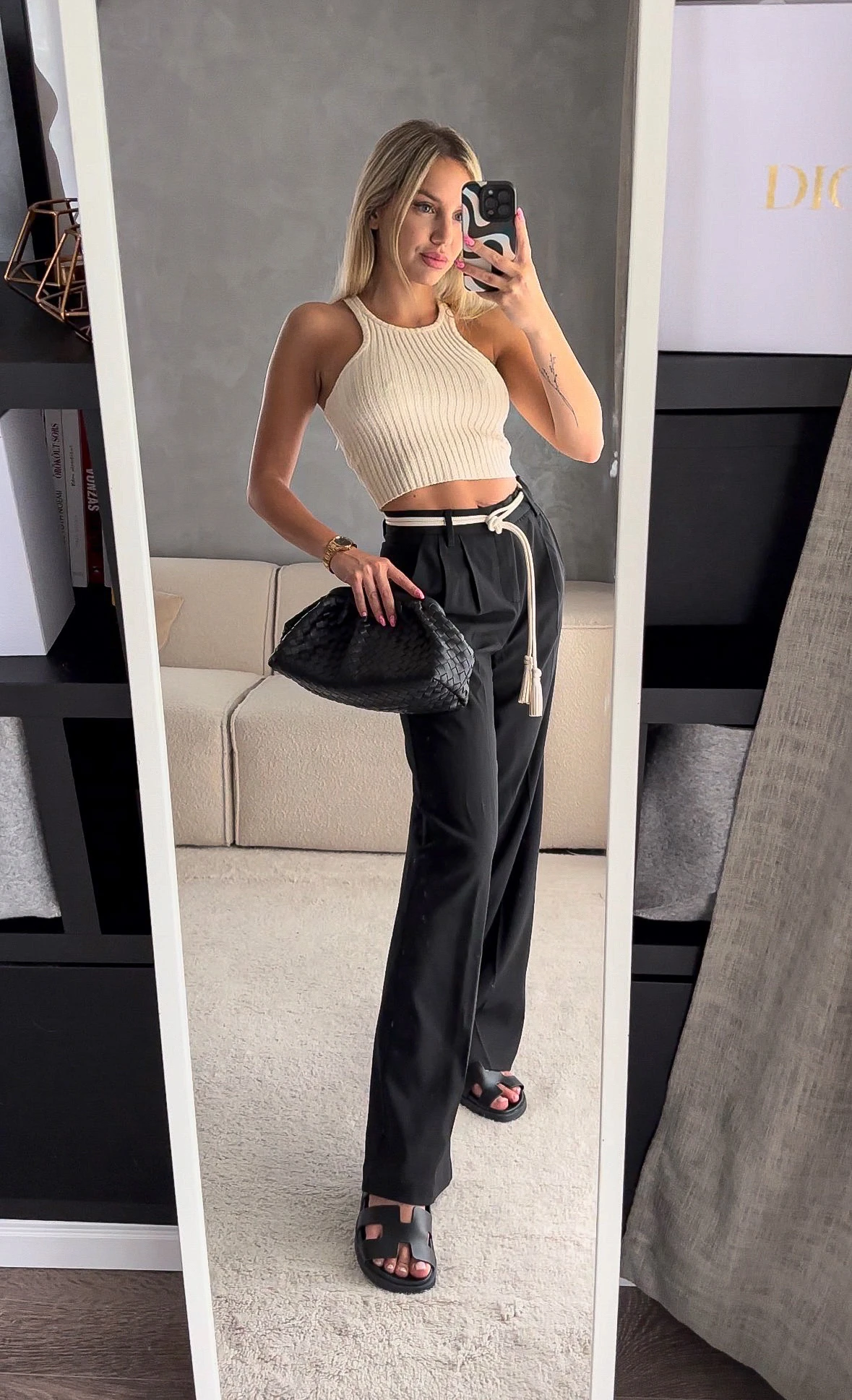 Noha többnyire a világos színeket hordom szívesebben nyáron, most ezen a borús napon megjött a kedvem egy kis feketéhez. Nemrég vettem “használtan”, de mégis vadonatújként a papucsomat, ami hatalmas szerelem, legszívesebben egész nyáron csak ebben lennék. Kicsit hippi stílus, ezért a nadrágom is bő szabású, és ezt egy egyszerű, mégis különleges toppal párosítottam. Hogy kicsit feldobjam a szettet (plusz ne csússzon le a nadrágom), egy H&M övet is felkötöttem. Na számomra ilyen az egyszerű, de nagyszerű outfit.