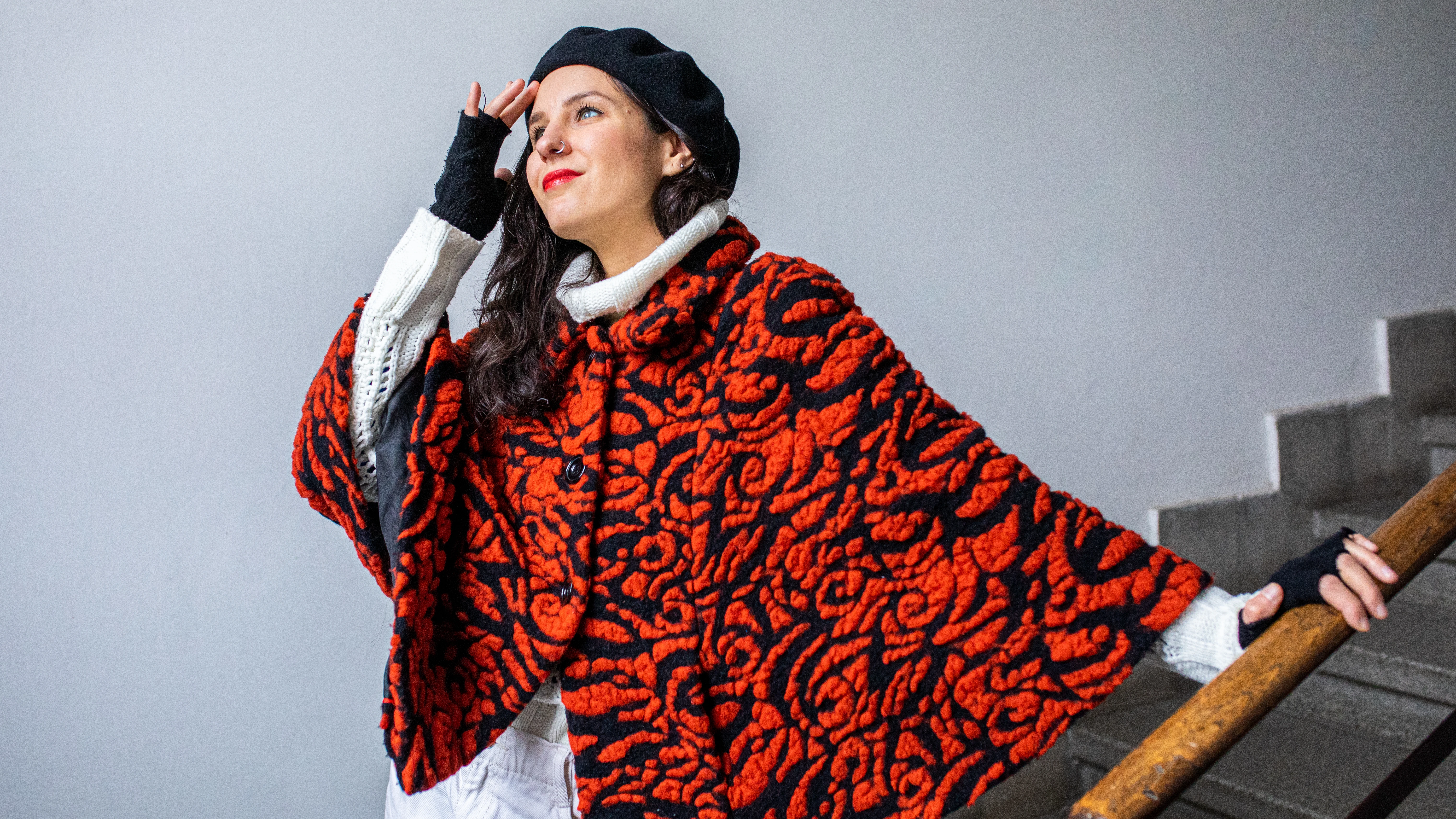 A nemezből készült kabátka pedig trükkös, átmenet a poncsó és a kabát között. Még az egyetemi éveim alatt szereztem be egy turiban, de azóta sem untam meg.