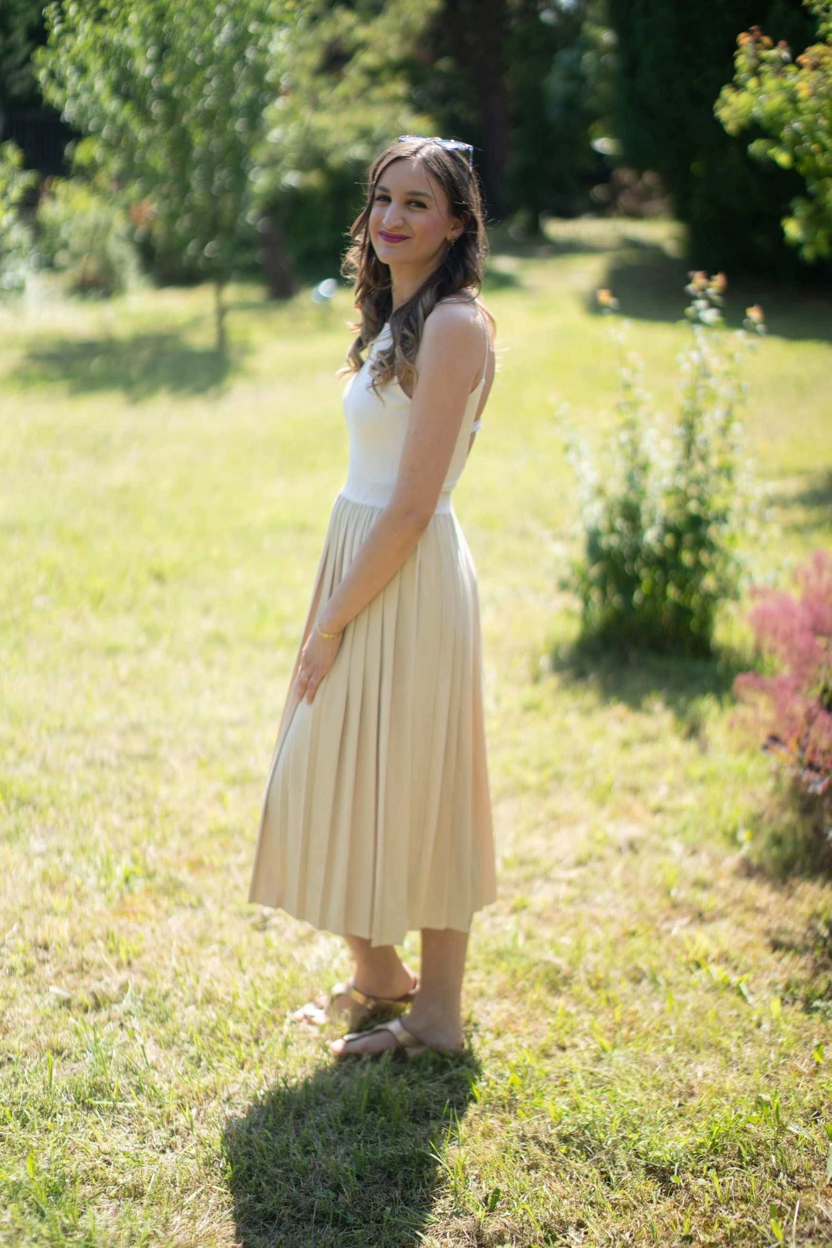 Kaptam egy fülest egy levendula farmról Nemesvitán, így nekivágtunk az útnak. Leesett az állam, amikor odaértünk, csodálatosan szép, hatalmas lila mező háttérben a tanúhegyekkel. Szerintem nemrégiben nyílhatott meg, most menjetek, amíg még nincs óriási tömeg! Levendulát szedni, baracklekvárt venni, fotózkodni, vagy csak gyönyörködni, LevenduLand a neve. Ma olyan szettet választottam, amiben kényelmesen érzem magam a gép előtt ülve, de egy könnyedebb sétát is elbír a természetben. Az arany Birkenstock papucs elengedhetetlen kelléke a nyári hétköznapoknak, illetve ezt a törtfehér Gant szoknyát is imádom. Ajánlom ezt a márkát, ha szeretitek ezt a letisztult stílust, mert bár nem olcsó, félelmetesen jó minőségű, még az én szétszórt életstílusom ellenére sem sikerült leamortizálni. A három aranyozott karkötő pedig egy kis francia kézműves műhelyből került ki és a három megélt évtizedemre kaptam.