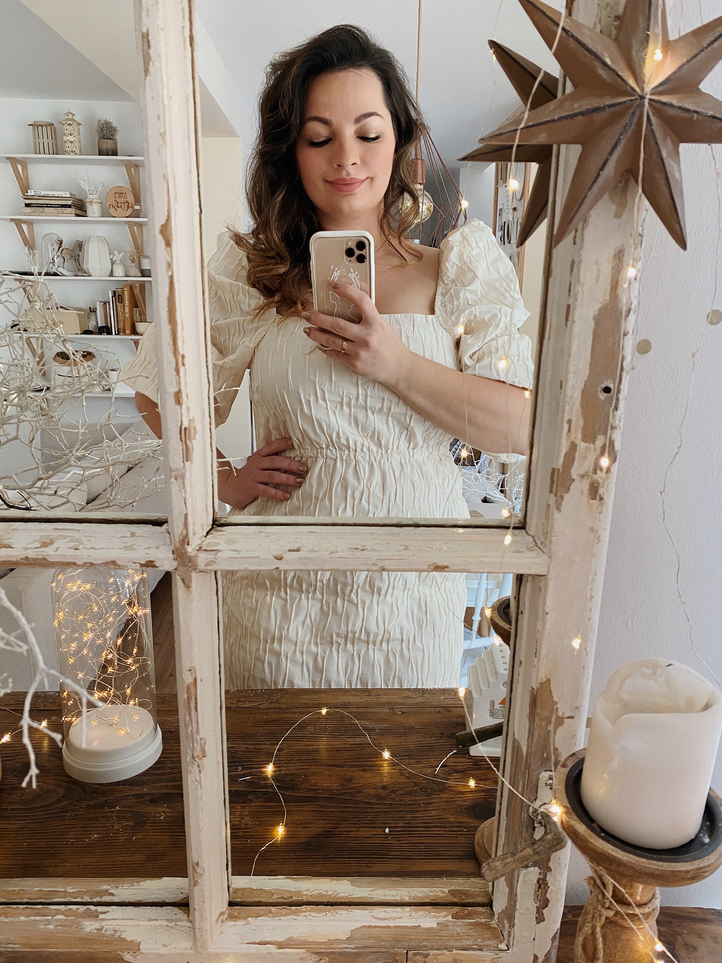 A munkámból kifolyólag sokszor kell bemutatókon, nagyobb eseményeken megjelennem, ahol nagyon fontos, hogy a ruhám szavak nélkül is meséljen rólam, a stílusomról. Ma is egy lakberendezési termékbemutatóra megyek este. Ezt a Samsoe ruhát pont egy fotózásra vásároltam, azóta is az egyik kedvenc darabom, imádom a texturált anyagát és a romantikusan puffos ujját. Jól illik a vintage stílusú enteriőrhöz is, ugye?