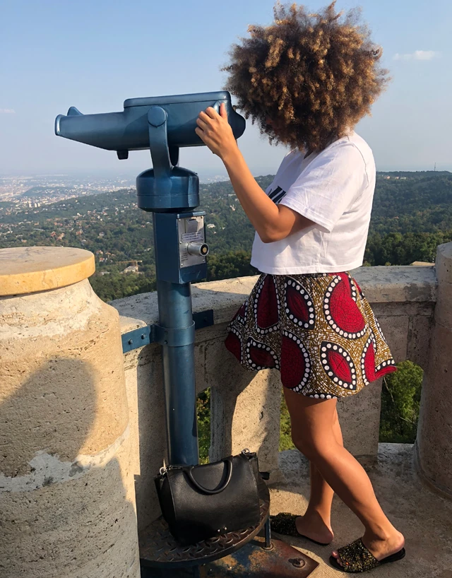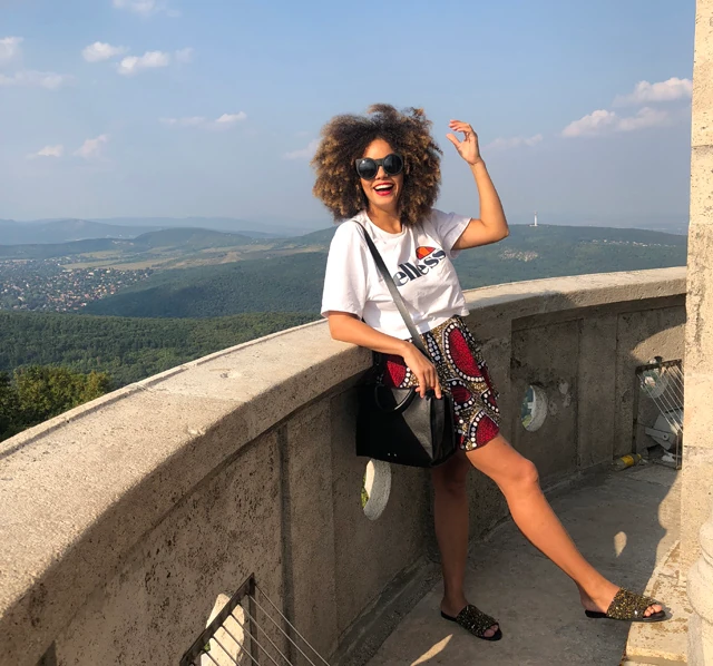 A nyár utolsó napján a jánoshegyi kilátónál kirándultunk. Remélem igazak lesznek a jóslatok és szeptemberre még jut a jó időből, de azért biztosra mentem és ma az egyik kedvenc szoknyámat vettem fel, amit még Afrikában szereztem be.