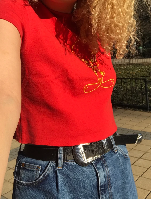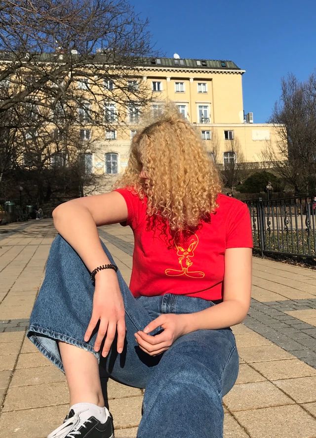 A tegnapi borús időhöz képest, ma hét ágra süt a nap, és már érezni lehet a tavaszt a levegőben! A csütörtöki programom, hogy meglátogatom az egy éves kishúgom, és babázós napot tartunk! Ehhez egy laza, kevésbé gondosan átgondolt, mégis szinkronban lévő szettet választottam! Egy általam levágott, turizott piros pólót választottam egy bő magasított derekú farmerrer és Vans cipővel. A szettet kisebb karika fülbevalókkal és a farmer táskámmal egészítettem ki.
