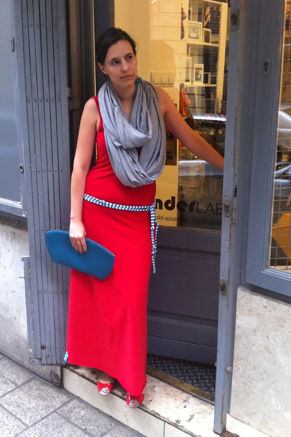 Állandó jellemzőm, hogy fél párban hordom a fülbevalót. Igen színesen és kényelmesen öltözködöm. Nagyon fontos számomra, hogy a munkahelyemen és a laborban egyaránt magamat adhassam. A hét első, és egyben legnehezebb napját ezzel a vidám piros ruhával indítom, amihez tökéletesen passzol Visy Dóri kék műgyanta fülbevalója. Ez a kombináció megfelel a munkahelyemen és délután a laborban is. Feldobja a napomat.