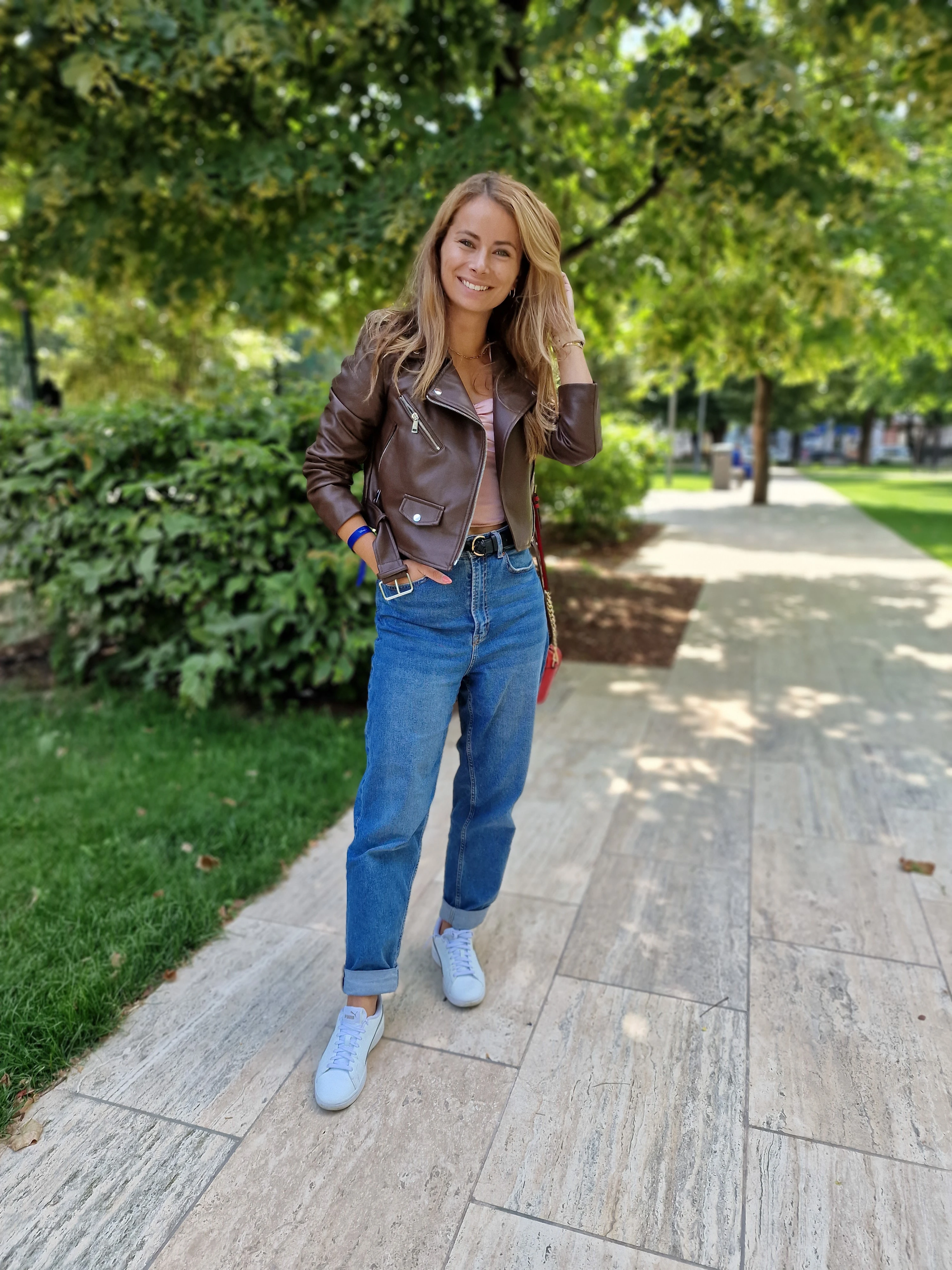 Ma újra utazás, ugyanis csak egy napot töltöttem Varsóban. Hátizsákkal mentem, ami azt jelenti, hogy praktikusan kellett csomagolnom. A farmer és a sportcipő maradt, de felülre egy fényes anyagú blúzt választottam, amit egy barna bőrdzsekivel tettem komfortosabb viseletté. Bizony, Varsóban szükség volt rá.