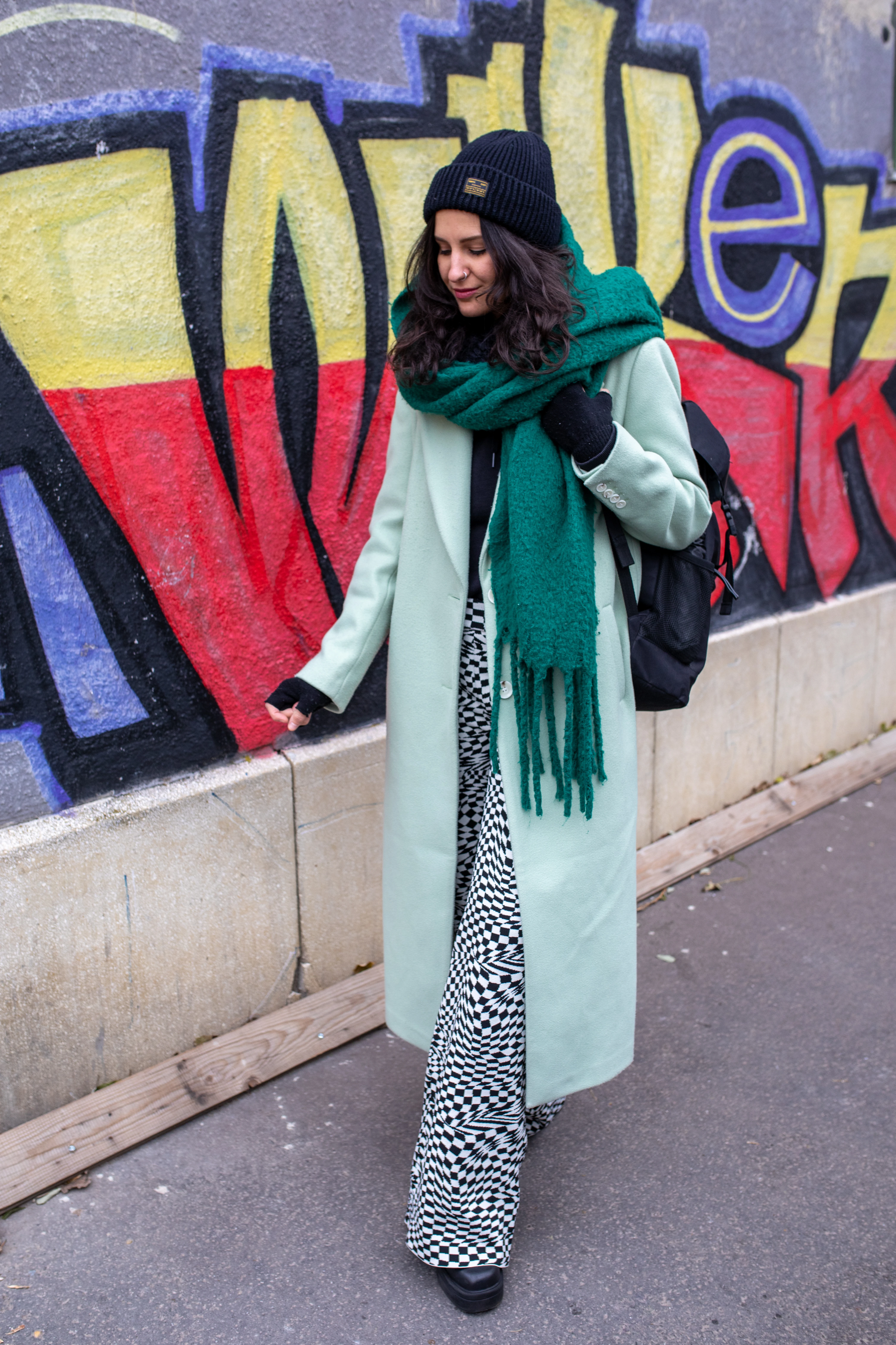 Rajongok a színekért és a mintákért, télen is, mert nagyon szeretem ezt az évszakot. Ilyenkor általában kényelmesen és melegen szoktam öltözni, és nagy hátizsákkal járni, mert egyik zenekari próbáról megyek a másikra, főleg ezen a héten.
