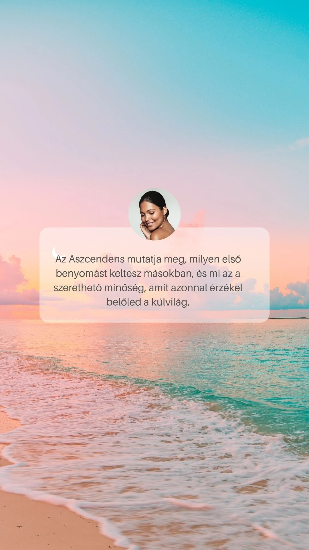 Végül az aszcendens mutatja meg, milyen első benyomást keltesz másokban, és mi az a szerethető minőség, amit a külvilág azonnal érzékel belőled. Ez a maszk, amelyen keresztül kapcsolódsz a világhoz, és ami azonnal megfogja az embereket. Gyakran előbb szeretik meg benned az Aszcendens minőségeit, mint hogy megismernék a valódi, mélyebb természetedet. Mutatjuk, mi a legvonzóbb tulajdonságod az aszcendensed szerint.