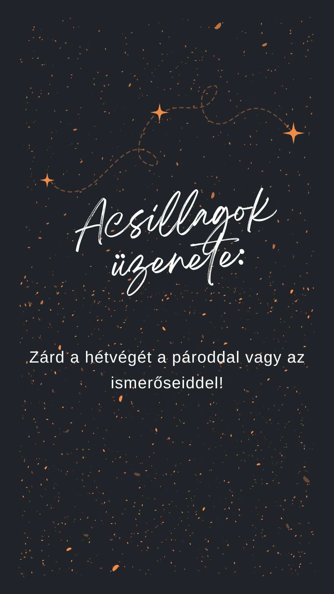 Mérleg (09. 24-10. 23.) Partit szervezhetsz a párodnak és kollégáidnak. Egy barátság szenvedélyes kapcsolattá érlelődik - csak a barátnőd párját ne akard elcsábítani.