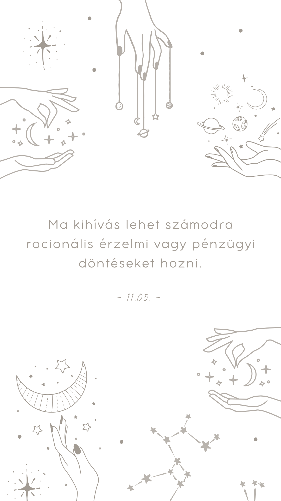 Erőteljes érzelmeid, féltékenységed vagy birtoklási vágyad akadályozhat abban, hogy racionális érzelmi és pénzügyi döntéseket hozz. Óvakodj a kölcsönfelvételtől - nem árt tudnod, hogy sok házasságot csak a közös vagyon tart össze. Ma hódolhatsz az érzéki élvezeteknek, az étkezés örömének, ha pedig üzleti társulásról vagy közös vállalkozásról van szó, óvakodj a manipulációtól!