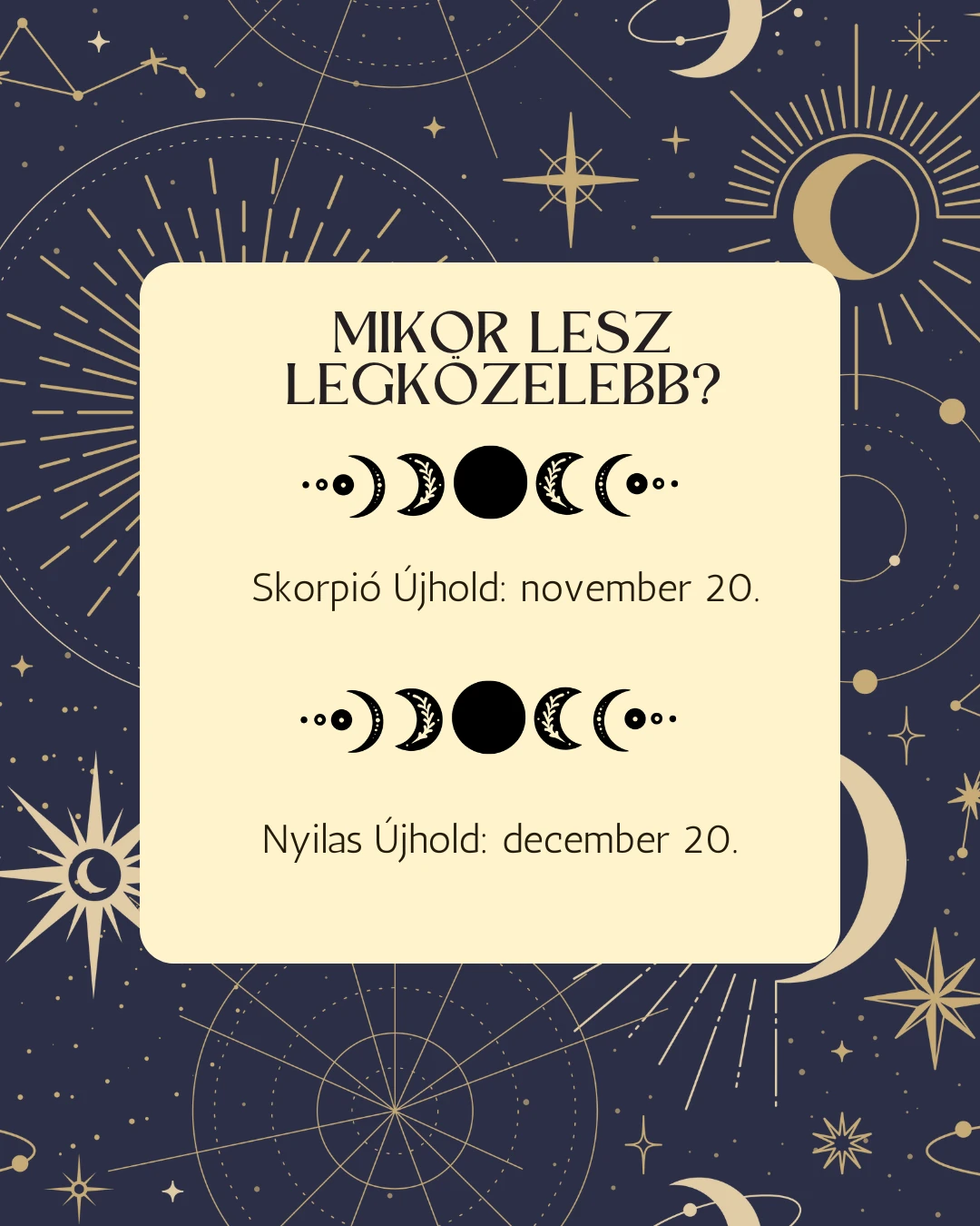 Ez az Újhold rámutathat arra, hol van káosz az életedben, és mi az, amit sürgősen rendbe kell tenned magad körül. Segít rájönni, hol vagy túl szigorú magaddal, és hol kellene inkább együttérzést gyakorolnod. A jelenlegi Újhold az 5. házban jön létre, és azt mutatja, hogy hogyan térj vissza az örömforrásaidhoz, és lezárd mindazt, ami nem hoz valódi boldogságot számodra. Most tisztulnak a gyermeki minták, a kreatív önkifejezés és a szerelem területén lévő régi beidegződések. Ez a pillanat lehetőség arra, hogy szívből, tiszta önazonossággal indulj tovább az életöröm és a szerelem útján.