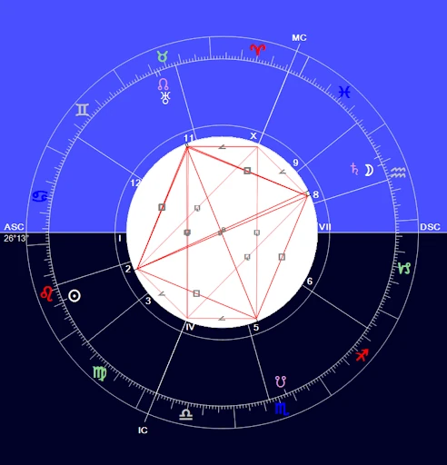 Önmagában ez a négy kvadrát rendkívül erős lenne és megérne egy saját cikket, de az, hogy mindez kiegészül négy szemi kvadráttal, plusz még négy szeszki-kvadráttal, hát az szinte fantasztikus. (Ezek nem olyan lehengerlőek, mint egy rendes, kvadrát, de azért igen sok behívó feladatot tudnak a nyakunkba varrni, főleg tizenketten.) Az MC-IC tengely is, pont úgy helyezkedik el, hogy a sima négyszögből ilyen csodálatos elnyújtott csillag legyen. Szóval van összesen két szembenállásunk és tizenkét kvadrát energiánk. Biztos nem foglak titeket untatni azzal, hogy ezeket egyesével átvesszük, higgyétek csak el, hogy ilyen erőteljes energiák ritkán vannak.