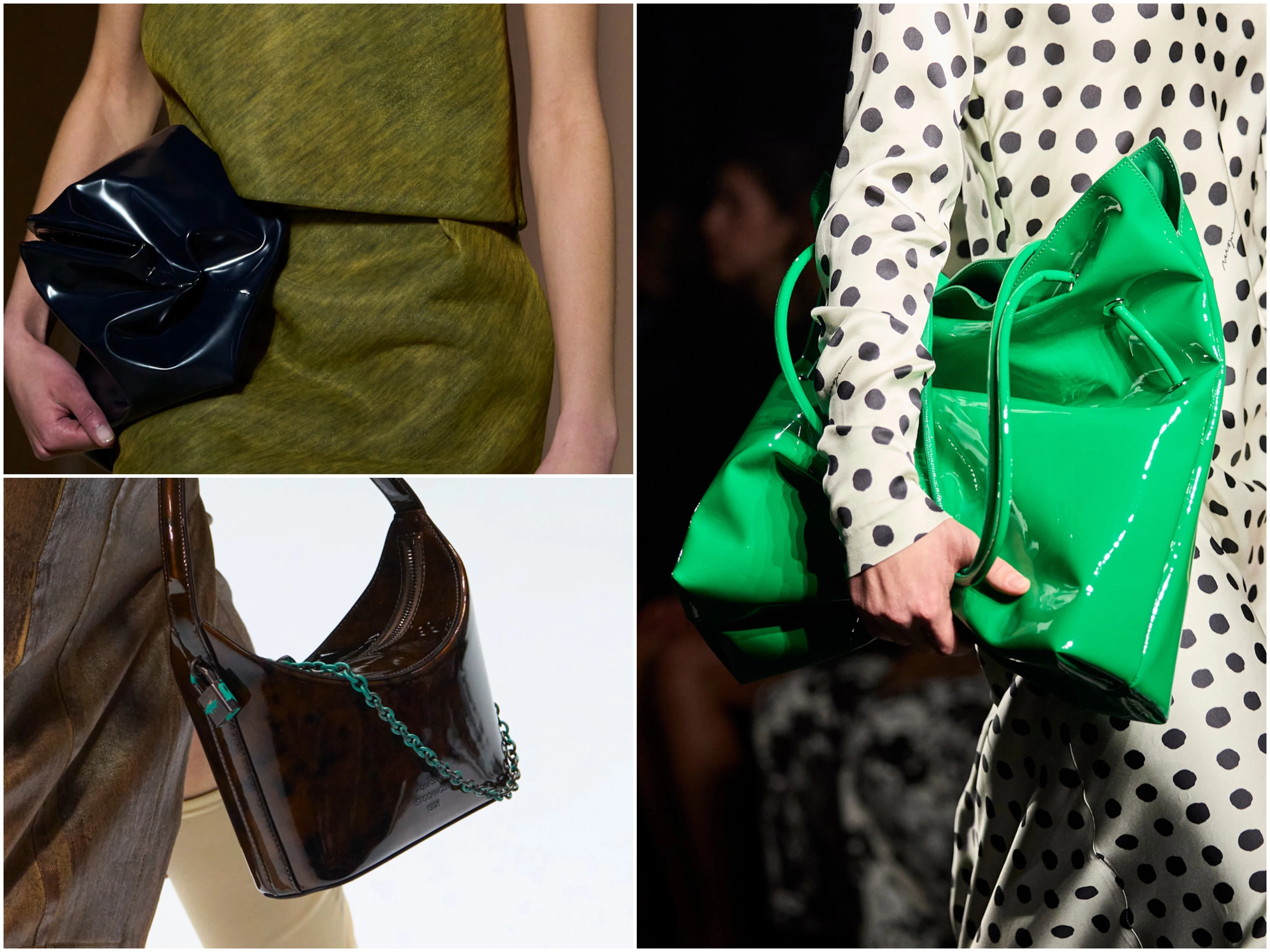 Lakkbőr táskák a feltűnő és a kifinomult divat határán. Philosophy, Acne Studios és MSGM kreációk a 2024-es őszi-téli szezonból