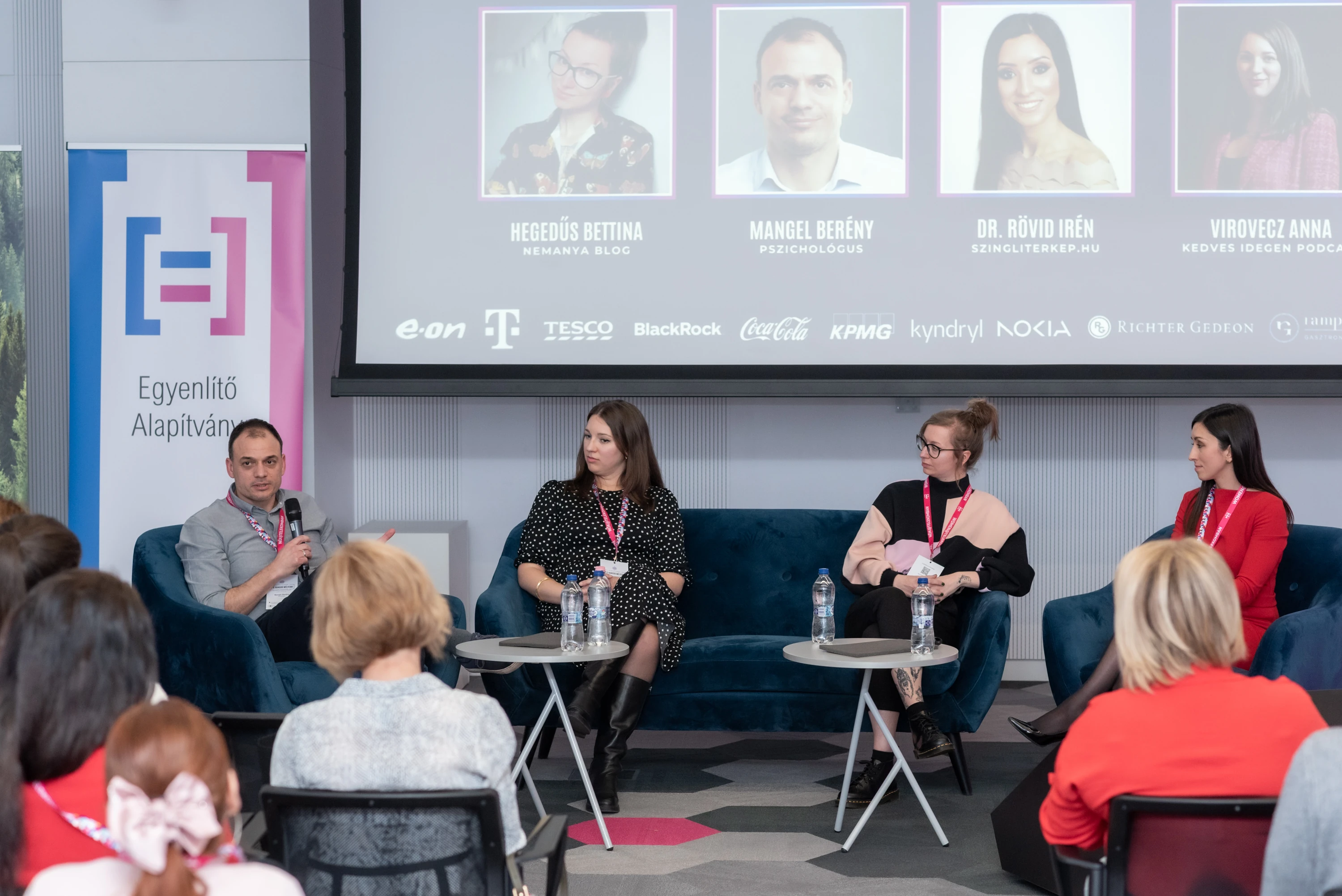 Az előadás egy kerekasztal beszélgetéssel folytatódott, melynek vendégei Hegedűs Betti, a NEManya blog alapítója, Virovecz Anna, a Kedves Idegen Instagram oldal és közösség alapítója, valamint a Kedves Idegen podcast co-hostja, továbbá Mangel Berény, klinikai szakpszichológus és szervezetfejlesztő tanácsadó voltak.