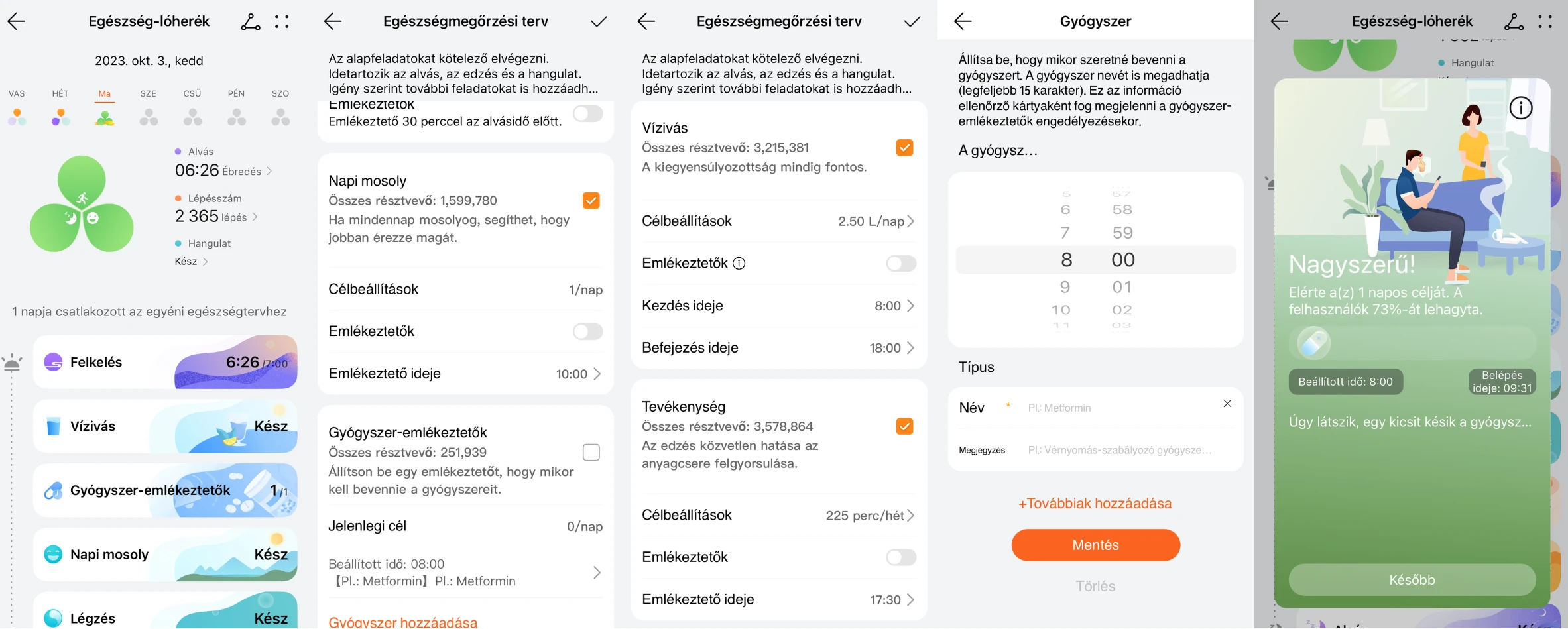 Miről szoktál általában megfeledkezni, ami fontos lenne az egészséged szempontjából? Napi 2,5 liter víz vagy a vitaminjaid? A HUAWEI Egészség Lóherék emlékeztetni fog az egészséges szokásokra és tevékenységekre, például a vízivásra, a gyógyszerek szedésére vagy a testmozgásra. Válaszd ki, min szeretnél dolgozni (stressz, túlsúly, álmatlanság, gyakori megfázás vagy bármi más) és az alkalmazás megmutatja azokat a teendőket, amiket megtehetsz az egészségesebb életmód érdekében. Elfelejteni pedig biztosan nem fogod: rendszeres emlékeztetőket küld majd neked.