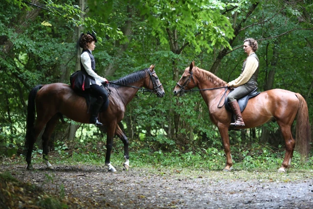 Petrik Andrea számára sok szempontból izgalmasnak kihívásnak számított a szerep, de egy valamiben nem volt biztos, amikor igent mondott a rendező, Herendi Gábor felkérésére. "A forgatás előtt sosem ültem lovon, és azt sem tudtam, hogyan fogom elsajátítani az alapokat a felvételek kezdetéig" – meséli a színésznő. Hozzátette, végtelenül szerencsés volt, mert segítőkész, türelmes oktató, a kaszkadőrszakértő Hídvégi Levente volt segítségére, akivel két hónapon keresztül szinte minden nap gyakorolt. Ennek meg is lett az eredménye. Rövid idő alatt nem csupán a legalapvetőbb lovaglási ismereteket sajátította el, hanem három hét tréning után már vágtára is vállalkozott, ami azt jelenti, hogy a kényelmés ügetés helyett nagy sebességgel rótta a köröket alagi pályán.