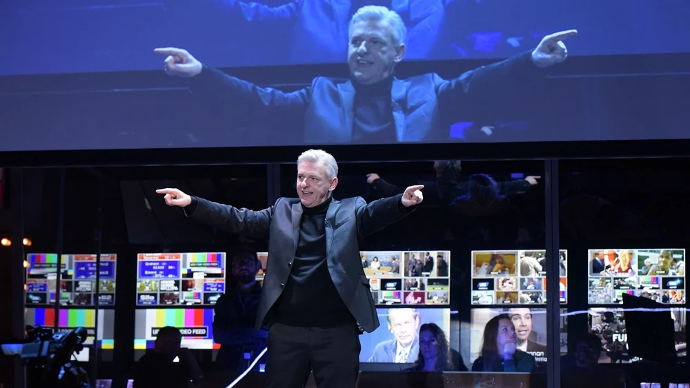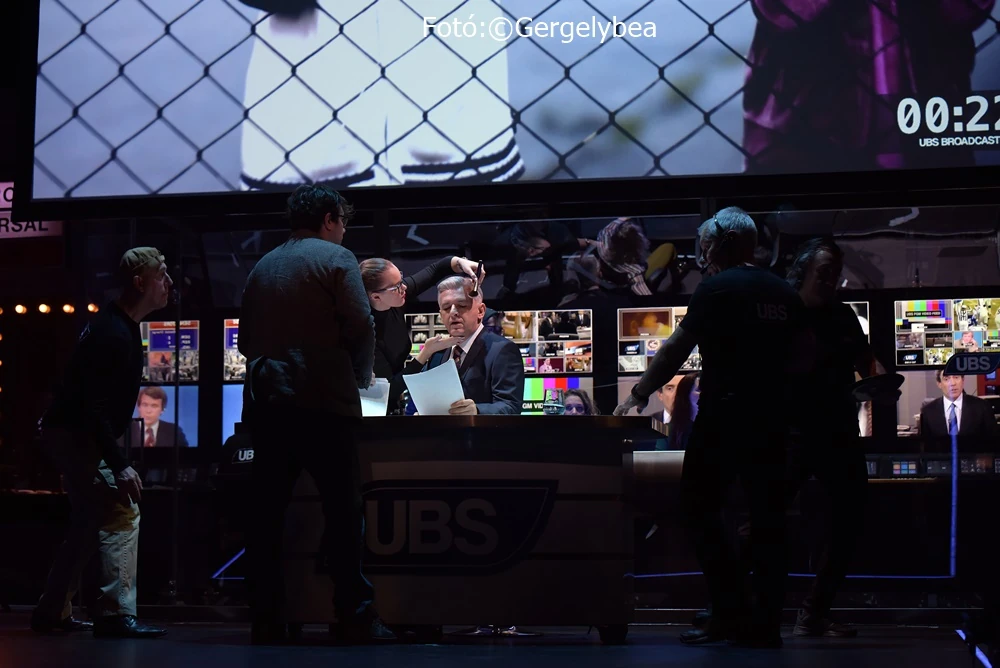 A tempós, fordulatos sztori beszippant, amihez még az érzés is társul, hogy benne vagyunk a tévében. A televíziós csatorna tapsmestere szítja a hangulatot a nézőtéren, akárha a stúdió közönségének tenné. Tapsolunk, kiabálunk, mikor mit kérnek – a szó szoros értelmében is az élő műsor részei vagyunk. Bejátszók is vannak. Csúcspontja az előadásnak, amikor Bodrogi Gyula a csatorna tulajdonosaként lakonikus egyszerűséggel igazít el a képernyőről, hogyan kell a kapitalizmusnak megfelelően cselekedni. Hiába a nyúlfarknyi szerep és az, hogy csak az éterből üzen, hatása egyszerre megrázó és megnyugtató.