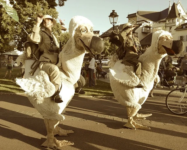 Hasonlóan lenyűgöző lények azok a kihaltnak vélt dodókacsák is, akik a szintén francia Ekart társulat két bátor szafari-kutatójának hátasaként barangolják be a fesztivált. S ha már a törzseknél tartunk, Mexikóból érkeznek a Foco alAire társulat tagjai, akik azt állítják: minden társadalomban felfedezhetők törzsi hagyományok, igaz, sokszor rejtett vagy rejtőzködő formában. Ők maguk is egy ilyen csoportosulás, akik színészi játékukkal képesek tapinthatóvá tenni a mai kor elidegenedett embere és a digitális társadalom furcsaságai mellett a bennünk élő ősi, törzsi ösztönöket. A fejükön hordott ipari lámpaburákból mozdulatlan maszkok merednek ránk, miközben arcukon a legfontosabb érzések szokatlan és talán kényelmetlen őszinteséggel jelennek meg. Tőlünk, nézőktől pedig azt várják, hogy csatlakozzunk táncukhoz. A La Cie des Bras Cassés két francia művészéről nehéz eldönteni, hogy kik is valójában: postások, vidéki zsaruk, vagy épp vásári komédiások - mindez a helyzettől függ. Motorizált recsegő hangú járgányon utazva cirkálnak a Szigeten, hogy aztán imádnivaló stílusban vonjanak kérdőre, zavarjanak, zaklassanak, de persze leginkább szórakoztassanak mindenkit, aki útjukba akad. Idén három őrületes mobil parti is gondoskodik majd a folyamatos utcai rendbontásról. Az első a nehéztüzérség kategóriájába tartozik: a Mission Delírium 20 tagú kaliforniai fúvós marching bandje garantáltan leviszi a hajadat. A második a steampunk jelmezekben táncoló, afro-latin ritmusokkal operáló, 18 tagú Sound de Secá, akik Spanyolországból érkeznek. A harmadik vendég pedig Mister Piano (Dennis Volk), akit két éve már láthattunk a Szigeten, és aki ismét a tábortűz melletti közös éneklések hangulatát hozza el a fesztiválra, igaz nem egy gitárral, hanem egy kerekeken tovagördülő zongora és utánozhatatlan előadói stílusa segítségével.
