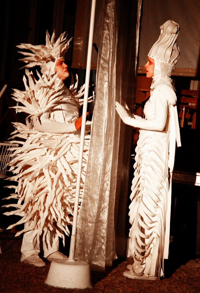 Akkoriban a Tamásnak már voltak különböző projektjei, performanszai, amihez mindig verbuvált közreműködőket, segítőket, modelleket. Én 18-19 éves koromtól már segítettem a háttérmunkát, szabás-varrás, ragasztás, mikor mire volt szükség, ha kellett, akkor modellkedtem is, Tamás nem csinált ebből nagy ügyet, hogy ki a modell, civilek is lehettek. Volt egy 8-10 fős fiatalokból álló mag, akik érdeklődtek a munkája iránt, és ők beugrottak, ha kellett. Amikor jöttek a nagyobb előadások, a Petőfi Csarnokban tartott egészestés divatshow-k, a Király´s Dream, Animal´s Dream, a Baby´s Dream stb., akkor nagyobb stáb segített az előkészületekben, ezek nagyobb volumenű előadások voltak, összetettebb, több ruhát felvonultató kollekciók készültek, zenével, koreográfiával. Úgy lehetne összefoglalni, hogy amikor kellett fotóztam, amikor kellett öltöztettem, amikor a ruhakészítésben volt szükség rám, akkor azt csináltam, ezek a produkciók így álltak össze, sokan dolgoztak benne, mindig azt, amire éppen szükség volt.