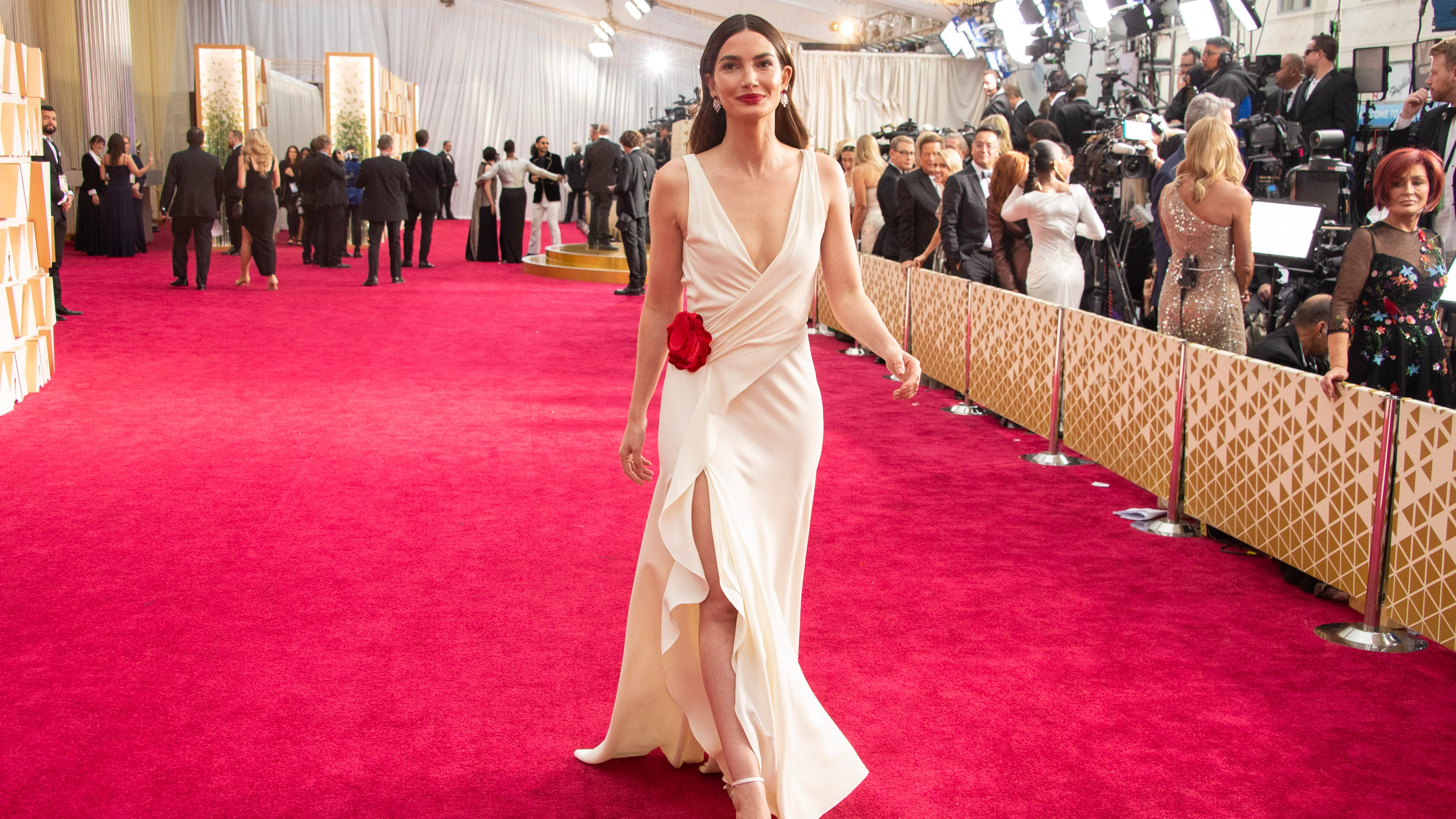 Lily Aldridge a környezettudatos divat felé bólintott azzal, hogy ezt a vintage Ralph Lauren ruhát választotta a 2020-as gálára.