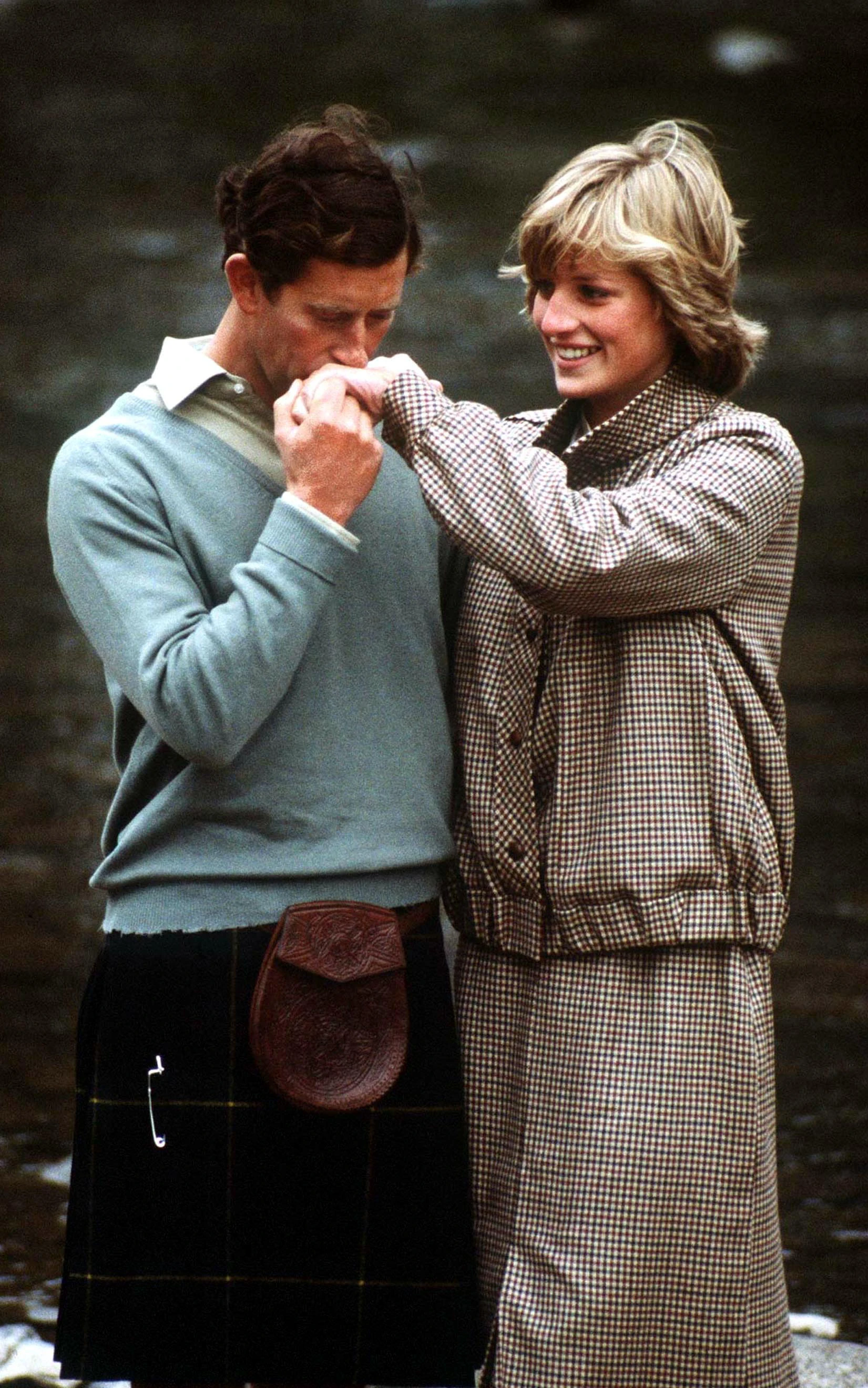 Károly herceg csókot nyomott Diana hercegnő kezére, miközben 1981-ben a nászútjukat töltötték Skóciában.