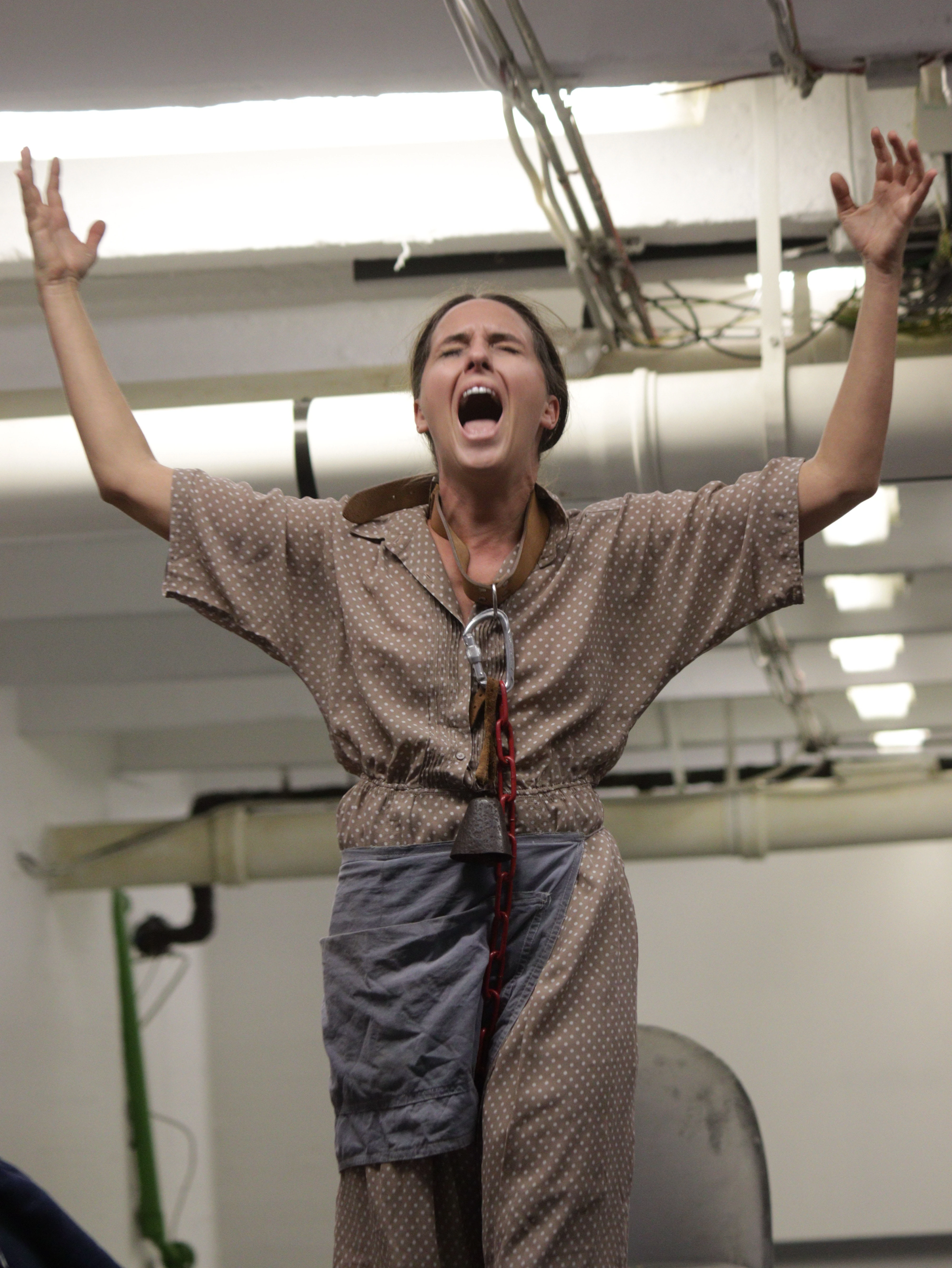 A Dogville című darabban Eke Angéla és a többi színésztársa, nem a megszokott színházi térben játszanak, hanem olyan helyen, ahol maga a tér a díszlet
