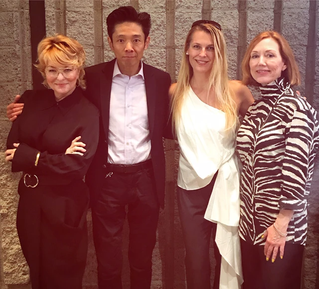 Útközben összefutok Lois Burwell akadémiai kormányzóval, aki már ismerősként üdvözöl. A Governors Ball dizánjáért felel, ő mutatta meg nekem a múltkori sajtóbejáráson az idei hivatalos Oscar-party lila-arany enteriőrjét. Most eredeti minőségében, Oscar-díjas makeup artsistként van jelen – ő fogja moderálni a színpadi beszélgetéseket a jelöltekkel. Hatalmas elismerés, hogy Lois megdicséri a felsőmet!
