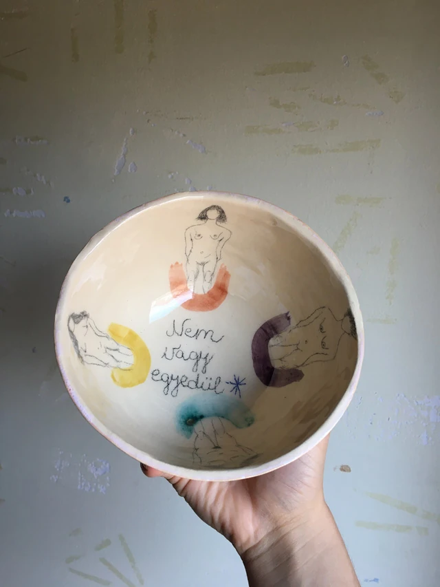 20 éves vagyok, tavaly végeztem az Apáczai Gimnáziumban, most pedig színészképzésre járok. Szóval mondhatni elég véletlenszerűen pottyant ez a csodás dolog az ölembe. Persze anyukámnak, aki iparművész, nagy szerepe volt ebben. Üveggel, ezüsttel, agyaggal és mindenféle más anyaggal dolgozik, szóval azért kiskorom óta nagyon sok kreatív impulzus vett körül otthon. De valahogy mégis inkább kilógtam a türelmetlenségemmel, és azzal, hogy képtelen voltam bármiféle precizitásra, minthogy kitűnjek. Viszont a fejemben tomboltak az ötletek, szóval sokáig gyötrődtem, hogy mégiscsak bele tudjam áramoltatni ezeket valamilyen kézzelfogható dologba. Így jött képbe a kerámia.