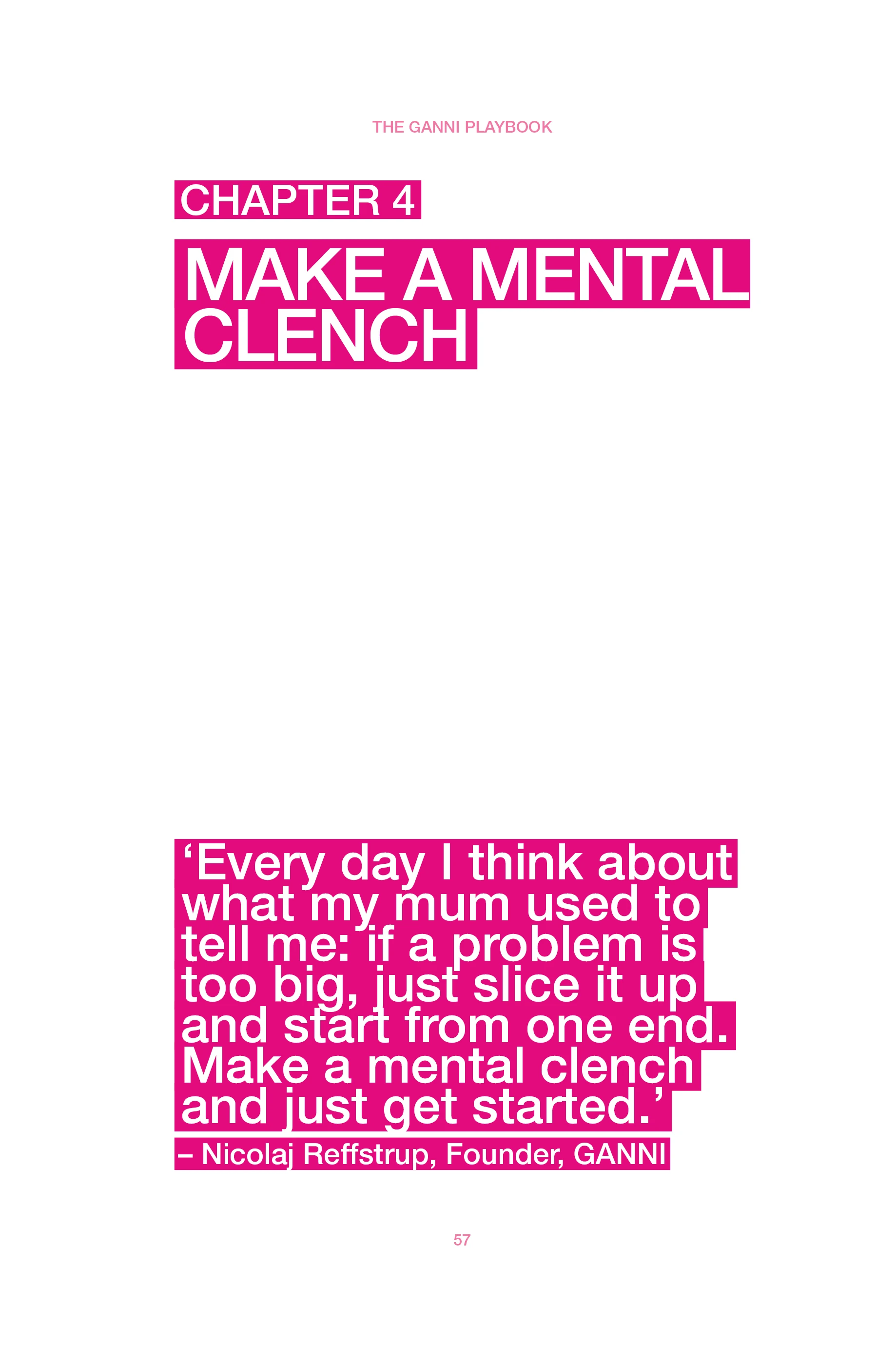 A GANNI Playbook gyakorlati tanácsokat ad azoknak, akik egy etikusabb és fenntarthatóbb utat választanának a divat világában. A könyv nem csupán útmutatás, hanem reflexió is arra, hogyan működhet egy cég a környezeti felelősség és a nyereségesség határvonalán. Nicolaj Reffstrup őszintén osztja meg személyes tapasztalatait arról, hogyan próbálták beépíteni a fenntarthatóságot a GANNI működésébe.