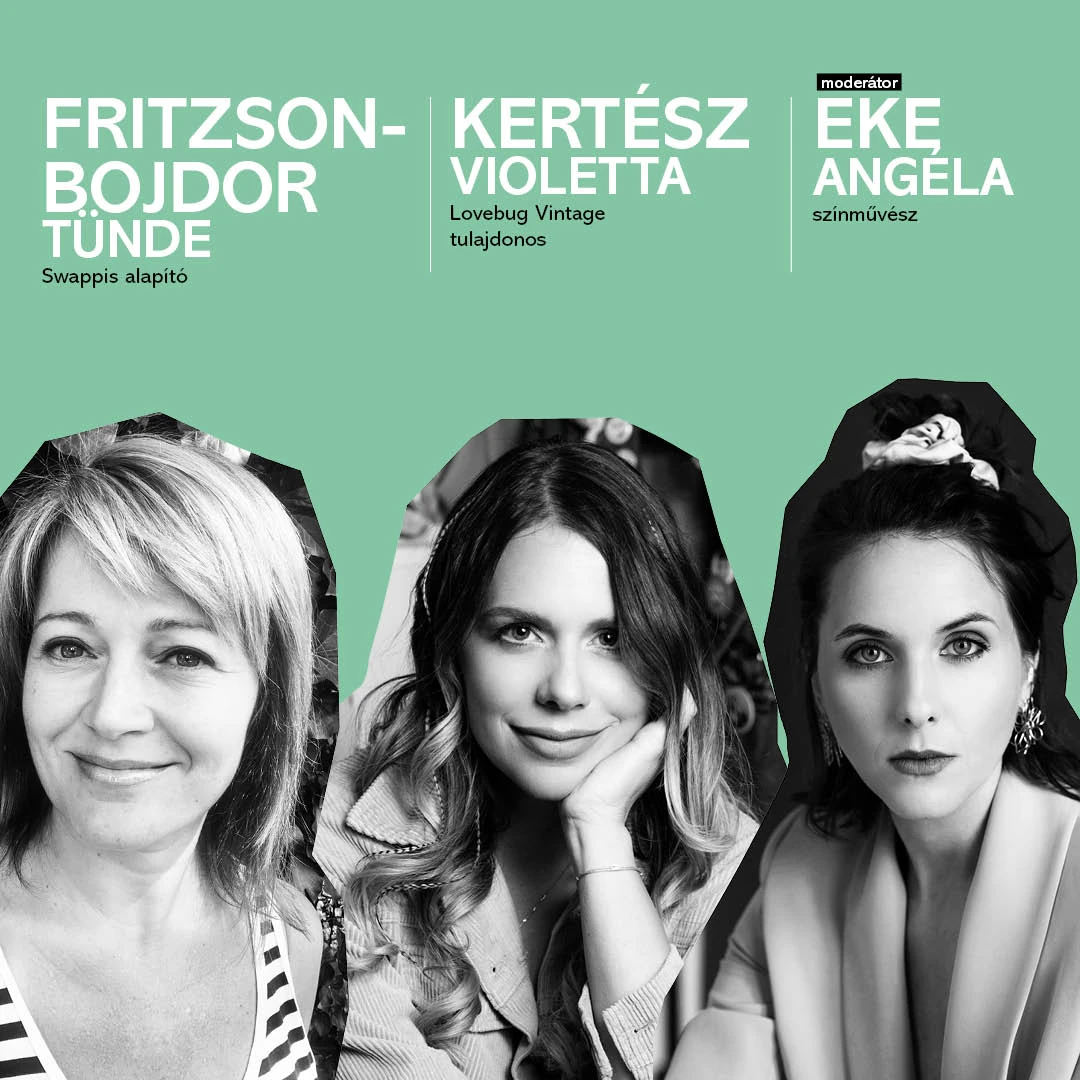 Előadók: Fritzson-Bajdor Tünde alapító Swappis, Kertész Violetta Lovebug Vintage tulajdonos, moderátor: Eke Angéla színművész