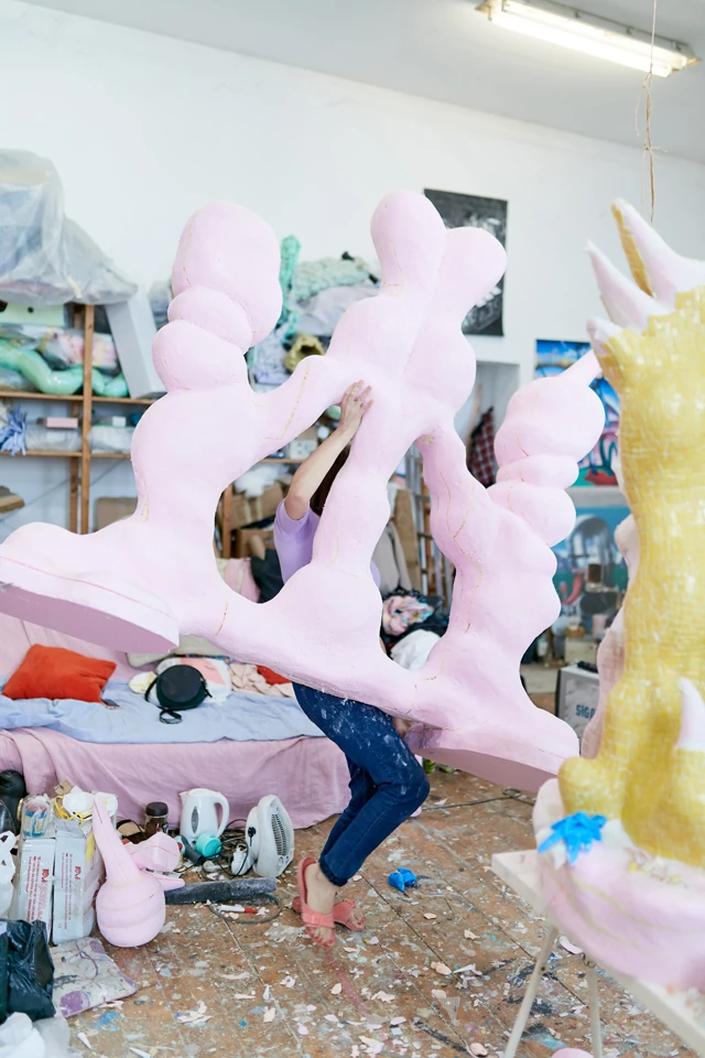 Egyértelműen a formák a legfontosabbak számomra. Hiszen mindig a forma adja a kiindulópontot, amire aztán a felületek és a színek bőrként húzódnak rá. Dolgoztam már textillel, papírral, és mindig hasonló formák köszöntek vissza, csak az alapanyag és a technika változott. Ez talán azért is lehet, mert a forma kialakítása a munkafolyamatnak azon része, ami a legösztönösebben működik. Munka közben sokszor azt érzem mintha az alapanyagok alapvetően tartalmaznának egy eleve elrendelt formát, amit hagyok kibontakozni a kezeim alatt.