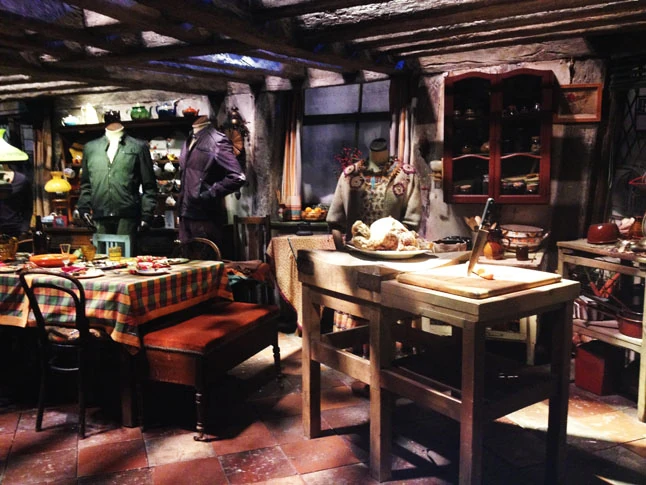 Ezután pedig megérkezünk a filmekben látott helyszíneket, termeket, ikonikus látványelemeket végigölelő hatalmas terembe, ahol egymás után botlunk bele a különböző, oly jól ismert díszletekbe. Közelről szemügyre vehetjük Dumbledore szobáját, a Griffendél klubhelységét (ami erre az alkalomra karácsonyi hangulatba borult), Piton és Umbridge dolgozószobáját, Harryék hálótermét, Weaslyék otthonát, az Odút, Hagrid kunyhóját, a Mágiaügyi Minisztérium bejáratát, és a halálfalók hadiszállását.