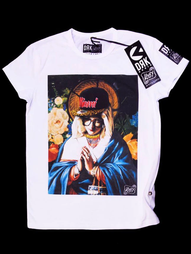 A tervezőnek eszébe se jutott bárkit megsérteni vagy a vallás ellen felszólalni. Üzenete ennél mélyebb és tisztább volt. Szűz Mária vagy a keresztes póló valójában egy új "vallás" jelenlétét tükrözik, a média-vallás népbutító oldalát fricskázza, ahol az új generációt már nem mi neveljük, hanem a média, ami gyakran olyan emberek kezében van, akiknek nem fontos a tartalom és a minőség, és nem akarnak tudni a felelősségről. Nagyon nem mindegy, mit látunk vagy olvasunk, a távirányító használata pedig már nem elég.
