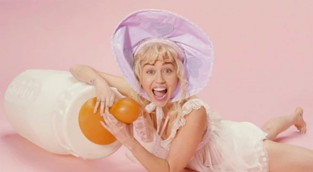 Miley Cyrus ezúttal óriáscsecsemőként hisztizik és káromkodik, hol a lábujját szopja, hol pedig egy óriás cumis üveget nyalogat. A nagyon elborult, de azért vicces klip egyébként egy kifejezetten slágeres refrénnel megtámogatott dalhoz készült. Íme: