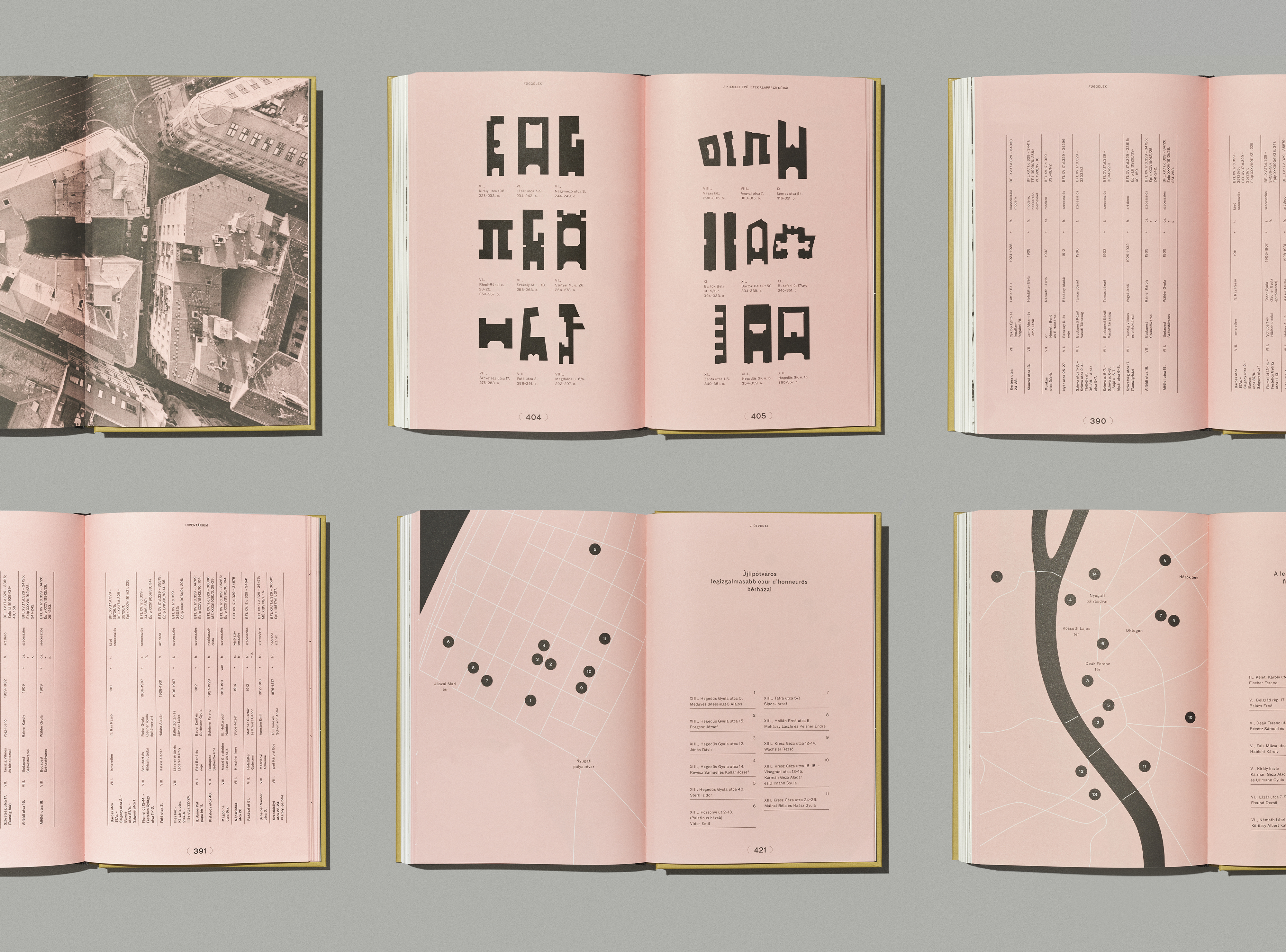 A könyvtervet, a designt Bárdy Anna tervezőgrafikus készítette, az ő víziója szerint öltött testet a kiadvány. Amit az elején tudtam, hogy szeretnék sok archív felvételt és eredeti tervrajzot is felhasználni és megmutatni, illetve, hogy az épületek mai állapotának bemutatásához jó minőségű fotókkal szeretném illusztrálni a kötetet. Utóbbi Schmal Fülöp fotóművész munkáját dícséri, aki csodálatos képeket készített. Végig az a cél lebegett a szemem előtt, hogy ne csak a szakmának készítsem a könyvet, hanem a laikusok érdeklődését is felkeltsem, amihez szerintem elengedhetetlen a minőségi design. Lehet, hogy olyan mélységében nem érdekel valakit a téma, de a vizualitás által beszippantja; akárcsak, ha belelapoz és jó érzéssel tölti el, rácsodálkozik milyen szép épületek vannak Budapesten.