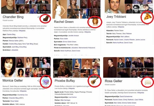 Rachel Green, Monica Geller, Phoebe Buffay, Joey Tribbiani, Chandler Bing és Ross Geller nevére keresve a gépgaléria sarkában egyedi motívumok jelennek meg. Ha rákattintasz, olyan vicces animációt láthatsz, amiről egyébként is az adott karakter jutna eszedbe.