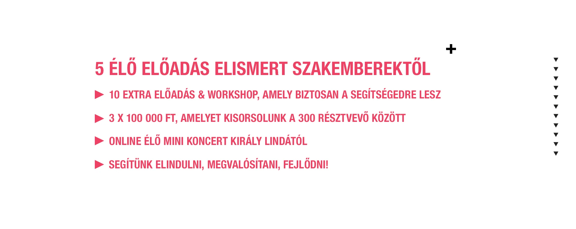 A konferencián szakértők segítségével készítünk fel a üzleti életbe való belépésre, olyan sikeres nők adnak elő, akiktől rengeteget tudsz tanulni akkor is, ha nem pont az ő iparágukban szeretnél érvényesülni. Többek között Tomán Szabina, Dukai Regina, Blaskó Nikolett, Muszula Tímea, Jagasics Cs. Hedvig árulják el a sikeres vállalkozás titkait, és még egy élő Király Linda koncertre is meginvitálunk. További előadók listája: