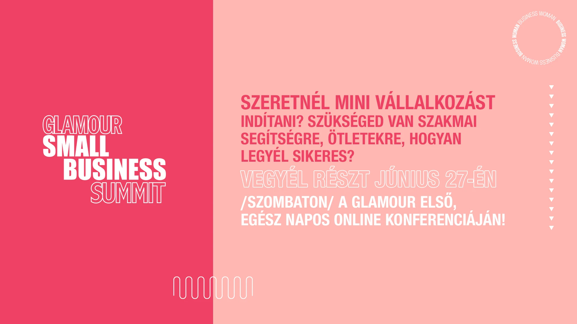 Június 27-én egésznapos online konferenciára invitálunk, a GLAMOUR Small Business Summit pont neked szól, ha vállalkozásodat szeretnéd fellendíteni vagy éppen most indítanád el, de kellene hozzá egy kis szakmai segítség.