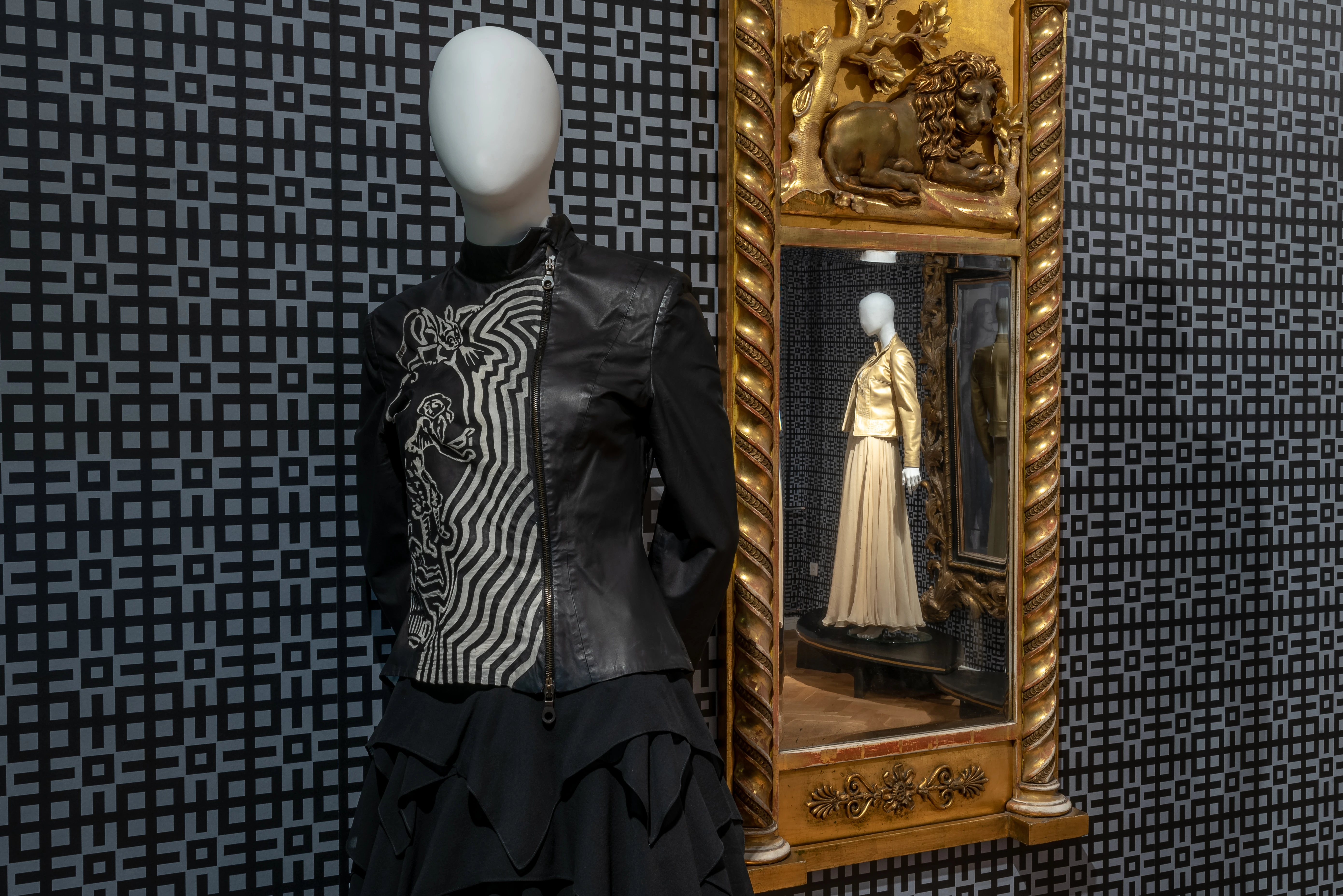 A középső teremben látható a historizáló ebédlő, amely egy elég sötét bútorzatú terem. Három ruhát állítottunk ki itt. Az egyik témájánál fogva kapcsolódik az ebédlőhöz, hiszen a fűzőn gyümölcsök láthatók, gobelin technikával készült darab. A másik ruha a rusztikus szövetet és a finom selymet egyesíti, és a hátán egy XVIII. századi selyemanyag applikáció látható. A harmadik ruha pedig szintén applikációval díszített, a mellrészen csipke díszítéssel. A két időszaki teremben még nehezebb volt a feladat, hogy a nagyon gazdag életműből kiválasszunk valamit. Van egy terem. ami fekete és arany színben pompázik, a másik pedig fekete, piros és fehér színben. Ennek megfelelően válogattuk a ruhákat. Itt megint csak fontos volt a színvilágon túl az anyagok sokféleségének bemutatása, hiszen Zoób Kati bátran használja a különböző anyagokat, az organzát, és ezt a nagyon törékeny anyagot bátran párosítja például a nappával. A nappa egy nagyon finom kikészítésű bőr. A divattervező itt is felhasználja a régi motívumokat: például XVIII. századi bútorintarzia ihlette több kabátjának mintáját.