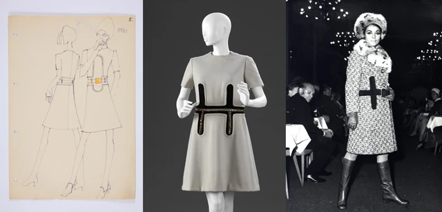 A beérkezett tárgyaknak hála például be tudtam mutatni, hogy hogyan adaptálta, tehát nem másolta a párizsi modelleket: egy korábbi kiállítás kapcsán kaptam egy ruhát a szalonjából, ehhez előkerült a divatrajz egy hajdani munkatárstól, amin az eredeti francia változat, valószínűleg egy Balmain modell volt. Egy központi motívumot, egy hasítottbőr betétet kicsinyített le és duplázott meg Rotschild a saját darabjára. Így egy teljesen más ruha született. Ezeken kívül egy fotót is találtam, amin ugyanez a dupla motívum egy kabáton látható. Ez a három tárgy jól megmutatja a munkamódszerét.