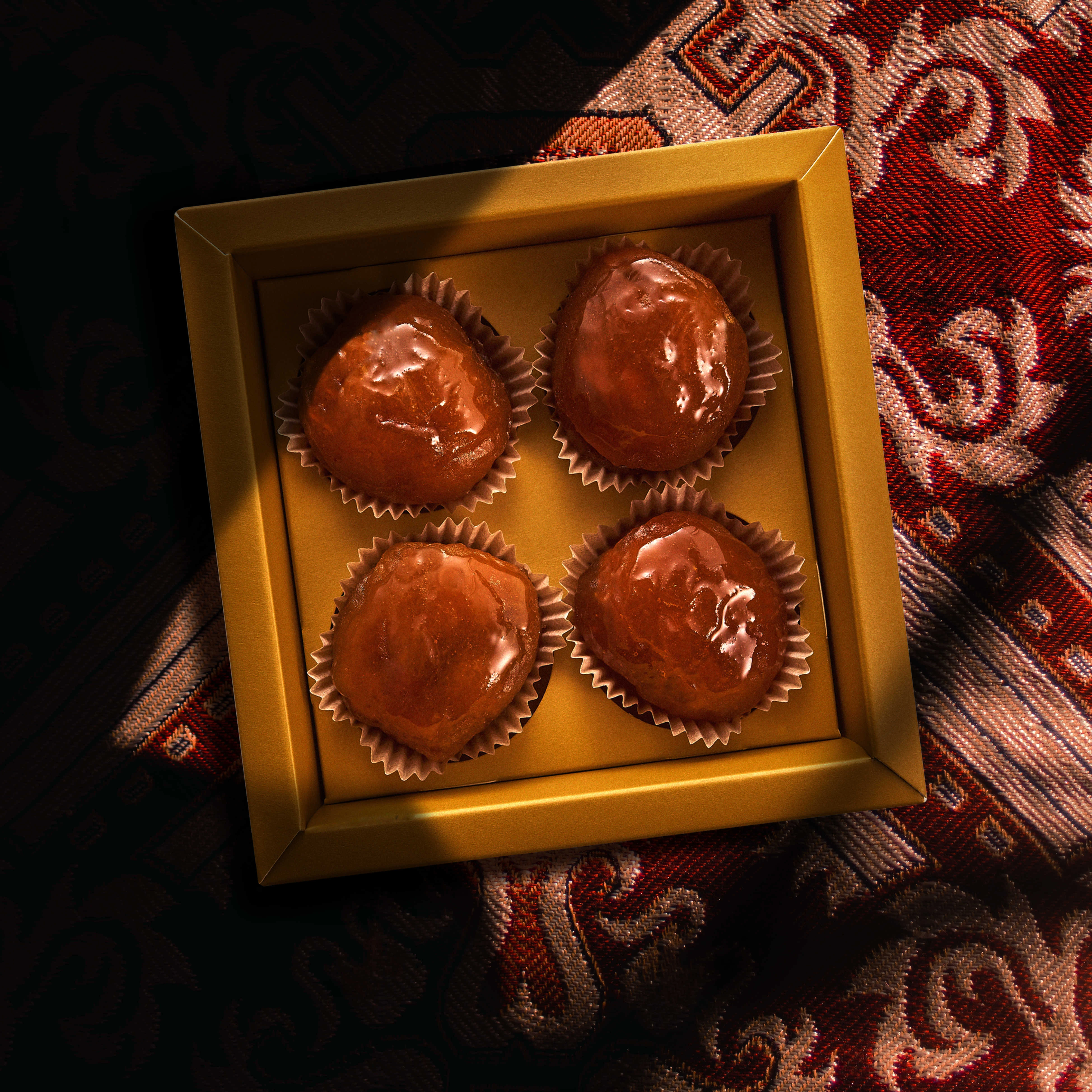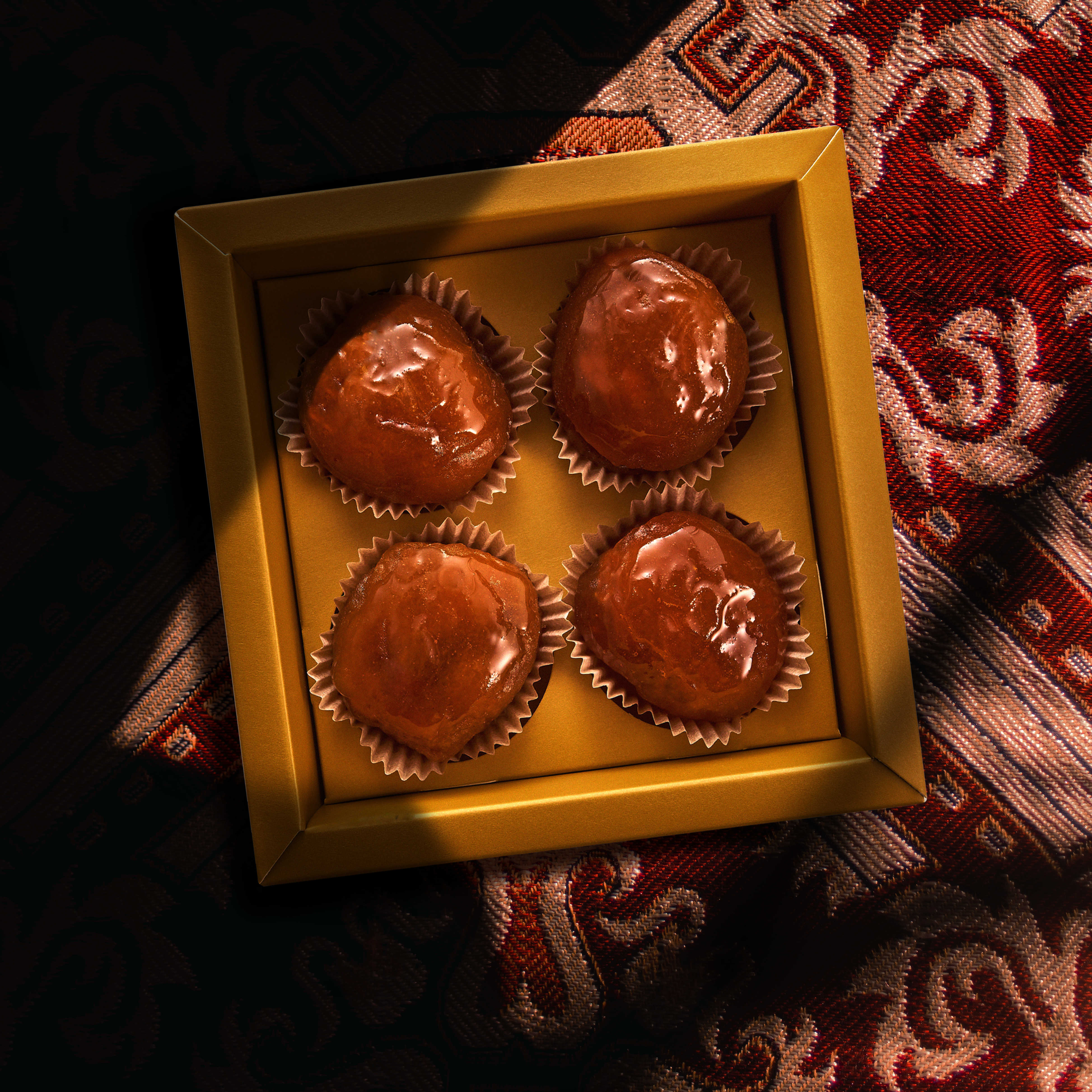 A cannes-i hőségre való tekintettel a GHRAOUI nem csokoládéval készül a filmfesztiválra, hanem a 200 éves damaszkuszi családi recept alapján készített aleppói pörkölt pisztáciával töltött kandírozott sárgabarackokkal. Ez az édesség nemcsak történelmüket, hanem örökségüket is talizmánként hordozza magában, hiszen a sárgabarack Damaszkuszt körülvevő Ghouta régióból származik, ahonnan maga a márka is. A desszertbe való első harapás után nem az átütő cukorsokkot érezzük, hanem az arany sárgabarack friss gyümölcsösségét, amely nem tolakodó a kandírozás ellenére sem.