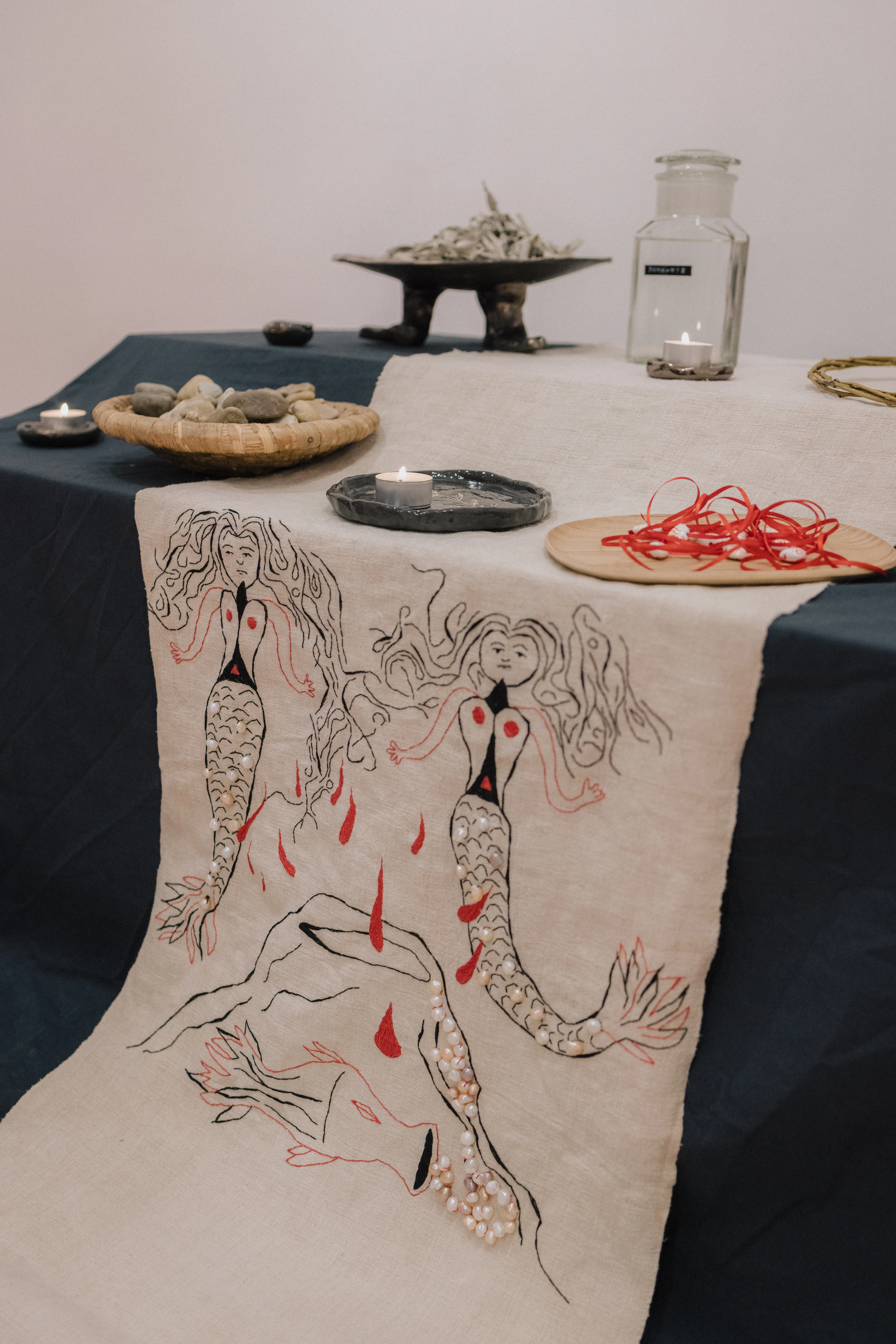 „Nagyon rossz a mentális állapotunk generálisan. Elvesztettük a kapcsolódási pontokat a világgal, sőt, gyakran saját magunkkal is. Nem tudjuk hol letenni a terheinket, sőt, nincsenek is rítusaink arra, hogy feldolgozzuk vagy lezárjuk a dolgokat,” – fogalmaz Ertl Eliza transzdiszciplináris művész, művészetterapeuta, művészetelméleti szakember. Bár Elizát a legtöbben a Tarot Kollektíva kapcsán ismerhetik, legújabb projektje, a Transitional Being című kiállítás elrugaszkodik a tarot kártyák világától. Eliza ezúttal egy orákulum bölcsességével tekint vissza a múltba, és – különböző tárgyak segítségével – gondol újra olyan elveszett, vagy elfelejtett szertartásokat, amelyek inspirációként szolgálhatnak arra, hogyan alakítsuk ki a saját, megtartó rítusainkat.