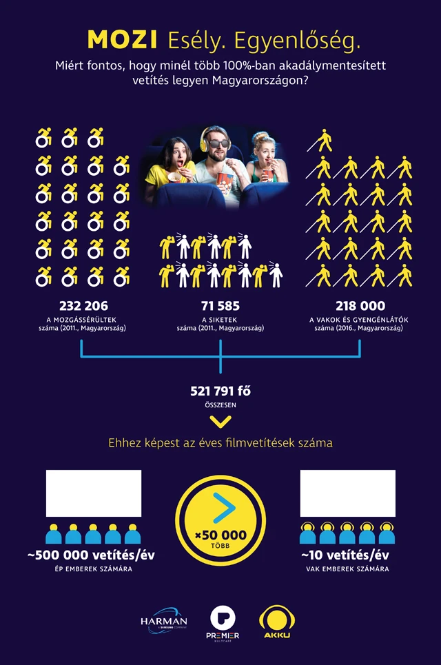 A HARMAN International, a Samsung Electronics kizárólagos tulajdonában lévő, önálló leányvállalat és az AKKU a mai napon jelentett be egy öt darab, teljes körűen akadálymentesített filmet tartalmazó eseménysorozatot. A projekt célja, hogy a vak, a gyengénlátó, illetve a hallás- és mozgássérült közösségek tagjai teljes értékű moziélményben részesülhessenek.
