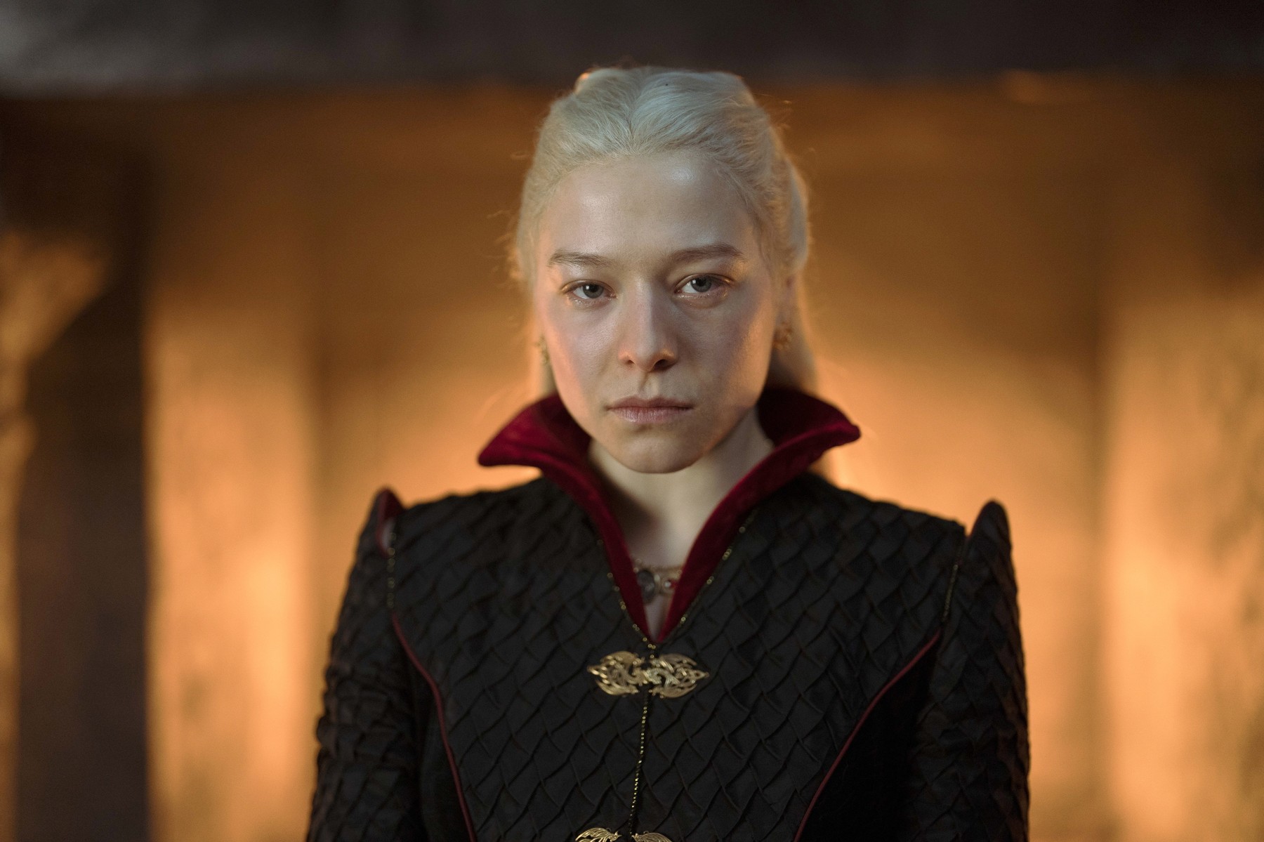 A Sárkányok háza legutolsó jelenetét órákig próbálták, mire megtalálták a tökéletes kameraállást és felvették 3-4 alkalommal. A jelenetben Daemon (Matt Smith) karaktere lehajtott fejjel odasétál az asztal mellett álló Rhaenyrához (Emma D'Arcy), megfogja a kezét, hátat fordítanak a kamerának, és a kandalló elé sétálnak. A néző nem hallja, ahogy Daemon közli a fiú halálhírét, és innentől Rhaenyra az egyetlen, akit látunk. Megfordul, „Rhaenyra felnéz, és háború van a tekintetében” – olvasható a forgatókönyv legvégén, ami már az első vázlatokban is fontos szerepet kapott. Ebben a pillanatban ugyanis minden megváltozik a karakterben, aki a férfiakkal ellentétben megfontolt és óvatos volt a trónért folytatott küzdelemben. A tekintetében viszont egyszerre van jelen a Viharvég árulása és a fia halála miatt érzett bosszúvágy, ami egyértelműen háborút ígér.