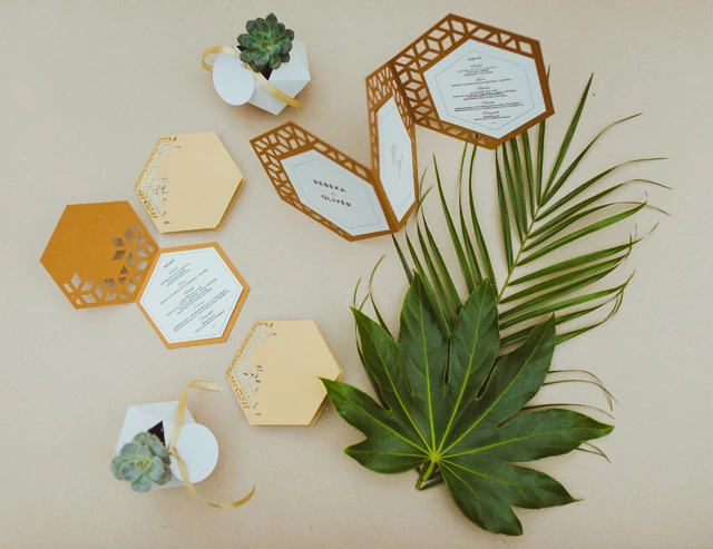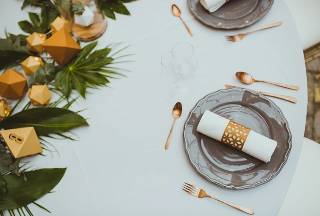 A Lace kollekciónkat romantikusabb lelkeknek ajánljuk, remekül megfér a természetes anyagokból készült kiegészítőkkel. Kicsit a régi idők hangulatát idézi, melyet minden generáció magáénak érezhet, szolidan elegáns. A csipke ihletésű részletek igazi ünnepi hangulatot biztosítanak, miközben jól megférnek a porcelánnal, arannyal, a finom pasztell árnyalatokkal, és rusztikus élő zöldekkel is. A Geometry kollekcióban az industrial, városi hangulat köszön vissza a dzsungel levelekkel kiegészített geometrikus kollekció formavilágban. A selyemfényű visszafogott formák és felületek hangulata egyszerre elegáns és modern. Izgalmas társa lehet a fekete fehér mintáknak, beton vagy a bontott tégla falaknak, de kültéren is remekül megállja a helyét. Apró fényekkel, füzérekkel együtt varázslatos, kortárs miliőt teremtenek. A Floral kollekció színes, bohókás formák roséarany kiegészítőkkel, a virágoskertek, tavaszi mezők hangulatát idézi. Könnyen varázsolhatod elegánssá a helyszínt, ha ezüst kiegészítőket használsz, de fehér vagy fa terítékekkel akár egyszerű, letisztult hatást kelthetsz. Esküvői fotókhoz tökéletes kellékek lehetnek az embernagyságú krepp papírvirágok.