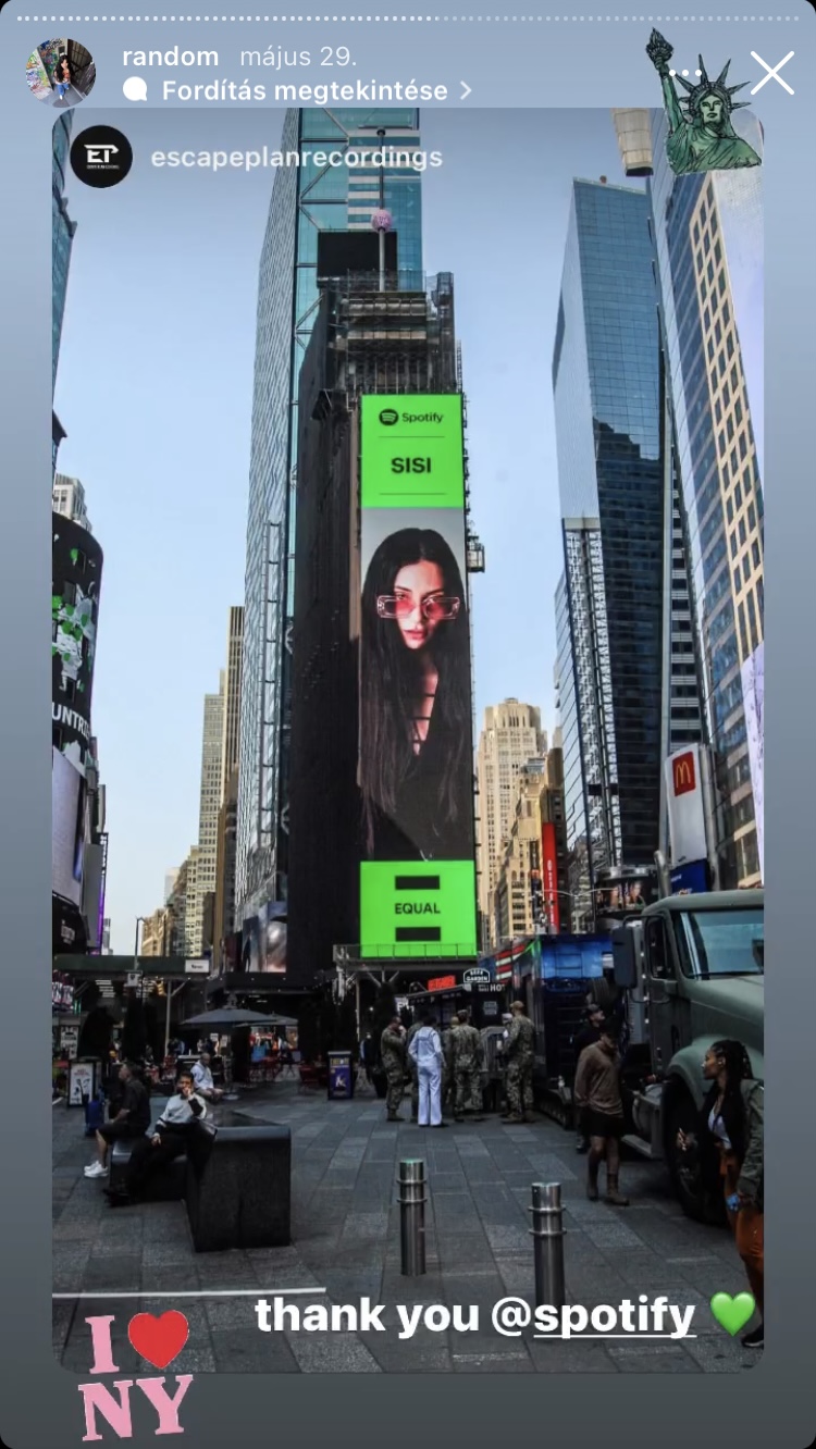 Sisi a Spotify EQUAL Hungary arcaként a Times Square-en