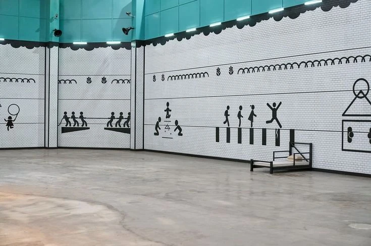 A Squid Game első évadához hasonlóan a második évad játék helyszínén is felfedezhetőek a falrajzok a háló körletben, amik valójában a játékok típusára utalnak. Van közöttük már felfedett, a nézők számára már ismert játék is, azonban az idei évadban a rajzok alapján utalást kaphatunk két új játékra is, hiszen az egyik minta egy sakk táblát ábrázol, amelyen emberek állnak, a másik ábrán pedig kapaszkodnak vagy zuhannak a plafonról. Nem mintha ez bármit is befolyásolna a játékosok számára, de érdekes, hogy ez még nem indított el párbeszédeket a szereplők között - mintha kifejezetten a nézők számára készült volna.