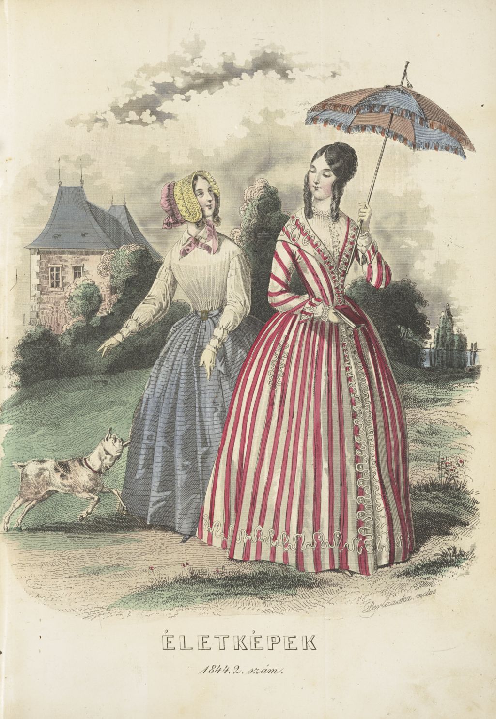 Így van. Az egyik kedvenc, a kiállításon is látható divatmetszetem két decens hölgyet ábrázol, akik célba lőnek egy szalonban. Ennek a szokatlansága árnyalhatja mindazt, ahogyan a 19. századi nőkre gondolunk. Hiszen a reformkor sajtójában éles viták zajlottak többek között a válásról, a nők politikai szerepvállalásáról és írói működéséről.