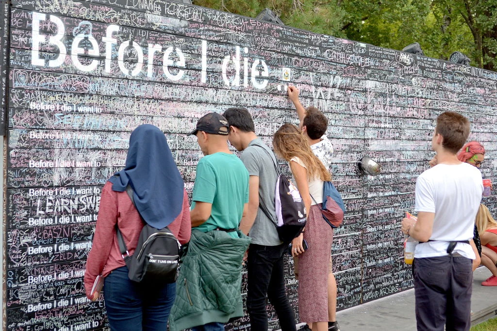 Candy Chang nemzetközi hírű amerikai designer-művész. Munkáival arra törekszik, hogy közösségi erővé változtassa az egyéni gondolatokat. A fal lehetőséget teremt, hogy az egyes emberek megosszák egymással vágyaikat, reményeiket, félelmeiket és történeteiket. Ez az interaktív, nyitott, művészeti projekt minden nap 12:00-22:00 óra között várja azokat az érdeklődőket, akik megosztanák gondolataikat vagy éppen újakat keresnének. Idén az egész fal a látogatók rendelkezésére áll, hogy kifejezzék, mi az, amire vágynak életük során. A Sziget közössége a hét folyamán gondolataival építheti ezt a végtelen bakancslistát. A fal a korábbi évek során egy multimédiás projekttel egészült ki, ahol a Szigetlakók 10 mp hosszúságú videó-üzeneteket is hagyhatnak a vágyaikról, a terveikről, melyeket zárás után egész éjszaka kivetítőkön sugároznak.