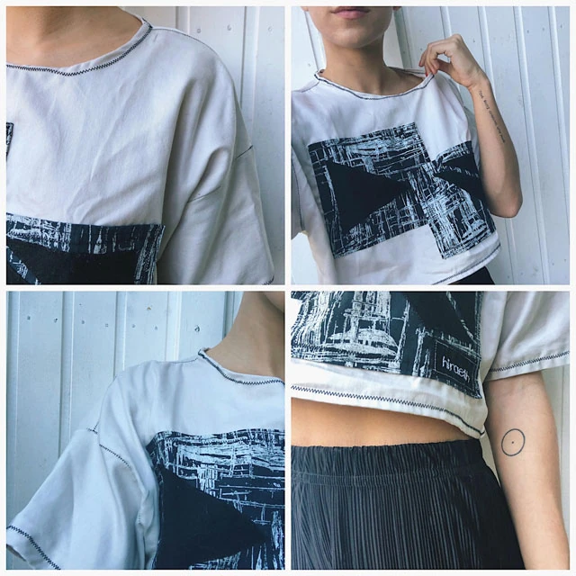 Zárásként szeretnék nektek megmutatni egy teljesen új márkát, a Hiraeth-et. Ennél a márkánál minden darabból egyetlen egy készül, újrahasznosított, használt anyagokból, KÉZZEL. A képen látható póló egy gumis lepedőből, egy férfi ingből és egy szoknyából kivágott anyagból áll össze. Lénárdt Laura a márka alapítója és ő tervezi, illetve készíti is a ruhákat. Múlt héten volt a márkabemutató, ahol ezt a pólót, illetve még egy topot is sikerült beszereznem és imádom. Egyébként ez a felső 3000 forint volt, szóval abszolút fast fashion árkategóriában mozog, annyi különbséggel, hogy teljesen egyedi és környezetbarát.